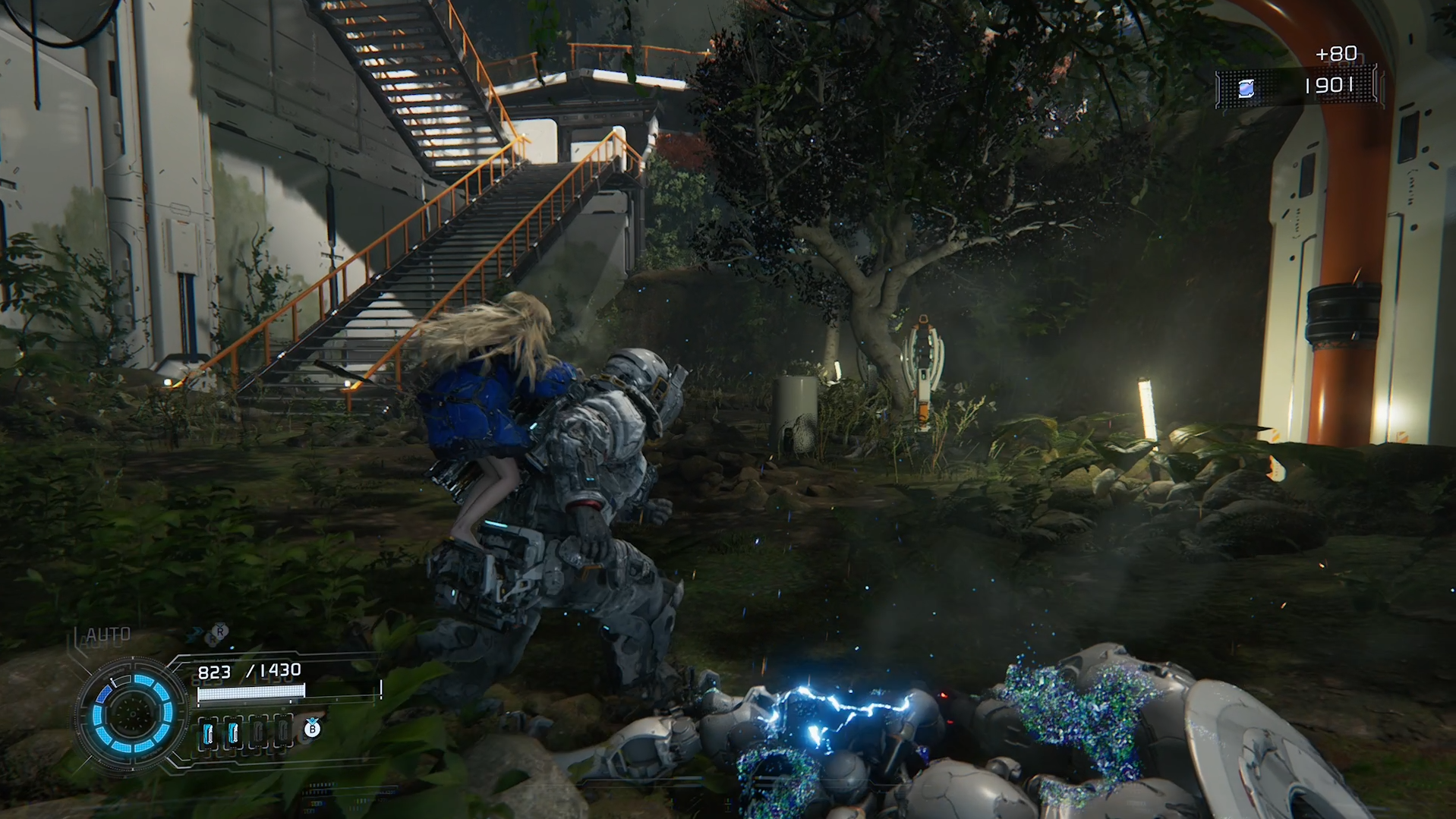 This multifaceted combat system keeps you on your toes and makes for some insanely fun gameplay. Combining strings of special nodes to link, confuse, stun, and otherwise weaken the robots and then following it up with a barrage of bullets and rockets made me feel like I was on a power trip as I melted robots left and right, all the while dodging their feeble attempts to defeat me. Diana shouts words of encouragement and even provides audible queues when you're being targeted, need to move, or when to strike. Hugh and Diana together are a powerful duo. After a good brawl, they can head back to the Shelter to regroup and get some shiny new stuff.
