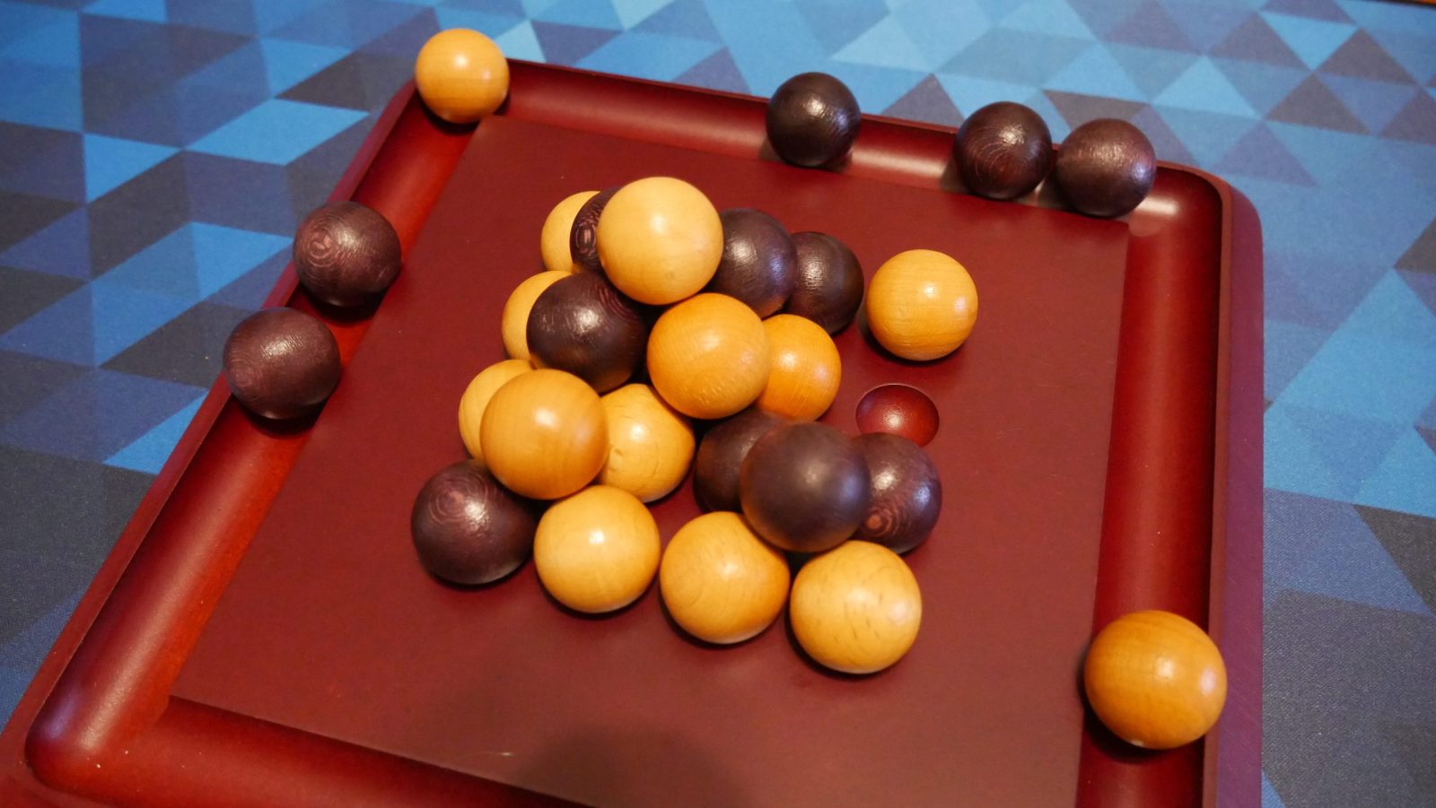 Once you have the rules down, Pylos is a snappy game. A winner will emerge in just a few minutes so it needs to have some staying power, something to make you want to go again. For me, Pylos is missing that something. There is some room for setting up plays that force your opponent to make bad choices or leave them without a way to block your move but it all feels rote. The 3D nature of the game can obfuscate the board state a bit but two competent players will more often than not be able to block every opportunity to gain an advantage through moving already placed balls or forming squares and gaining pieces back. Like Tic-Tac-Toe, once the game is understood, it plays itself.
