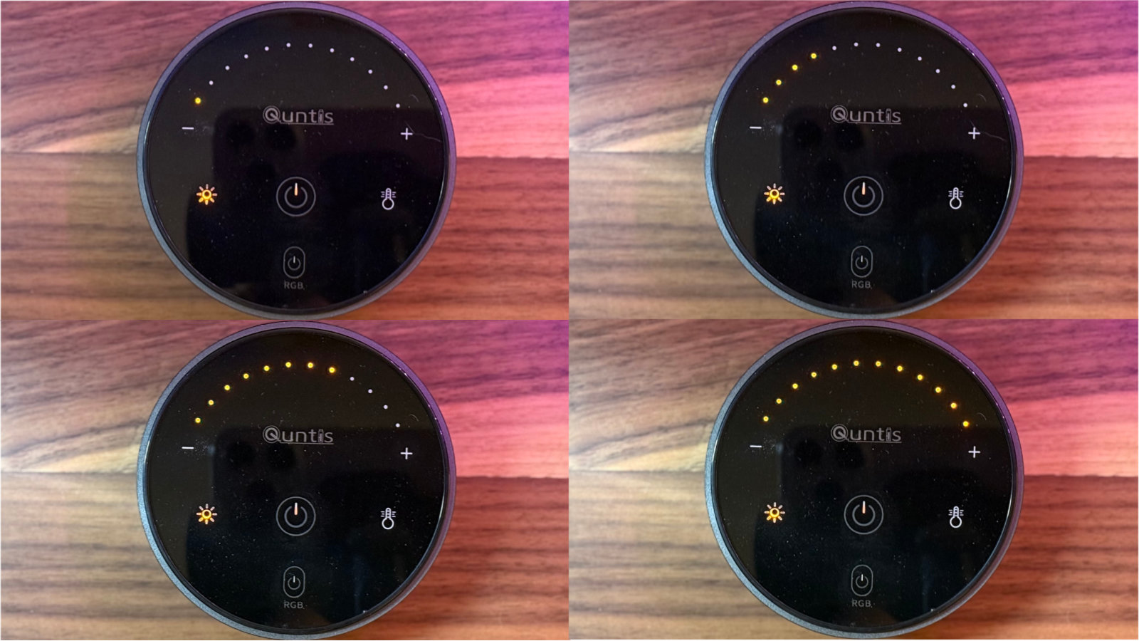 The Quntis RGB Pro offers a decent selection of brightness and temperature options for the downward-facing task light, though it’s not as extensive as it initially appears. While the remote makes it look like there are multiple brightness and temperature settings, in reality, you only get four brightness levels—what I’d call barely-on, low, medium, and high—and four color temperatures: very warm, warm, cool, and very cool. Unfortunately, the RGB backlighting on the back doesn’t have adjustable brightness. While you can switch between color options and modes, the intensity remains fixed, which might be limiting if you want a specific level of ambiance behind your monitor.