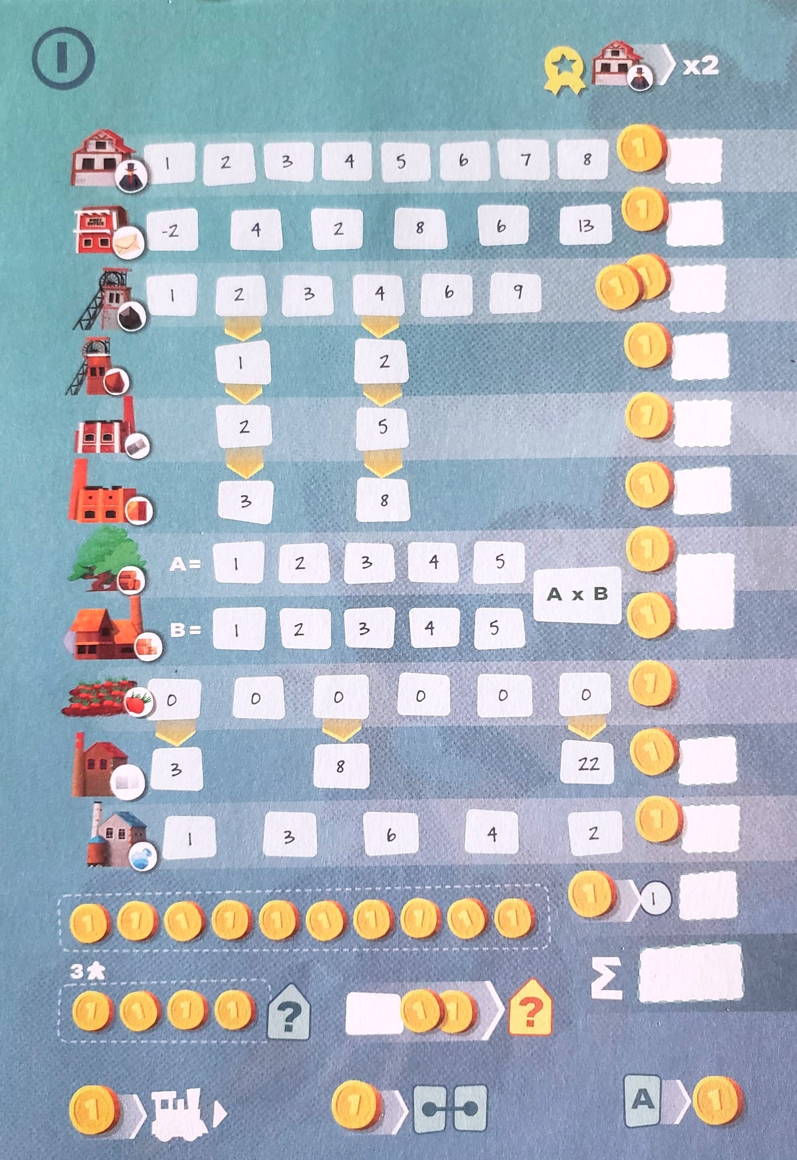 - Pay 2 coins to accumulate any resource in the leftmost unmarked section of their scorecard. This can only be done once per game!