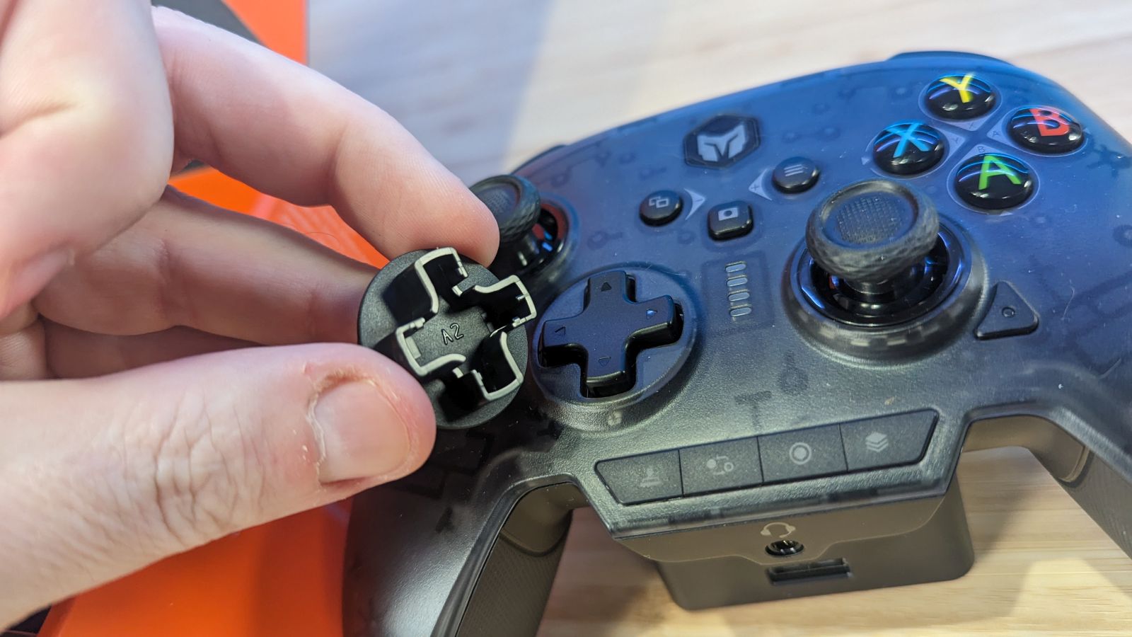 Also included is a dish-type 8-way D-Pad replacement, though I have to admit that I’ve never been a fan of these. If you happen to be, have at it — they’re included. The problem here is that neither of these D-Pad options are particularly tactile. Playing a game like Mortal Kombat 1, you can use the thumbstick or the D-Pad for your inputs. In other games, especially older retro ones, you might not have that flexibility. The problem here is that the D-Pad just doesn’t move that much. It has a very short throw, and that leads to some unintentional inputs. It doesn’t take much to accidentally hit the diagonals, especially with the dish shaped option. In short, the controller was built for modern gaming – I’d stick to something built for retro gaming over the Rainbow 2 Pro Elite.