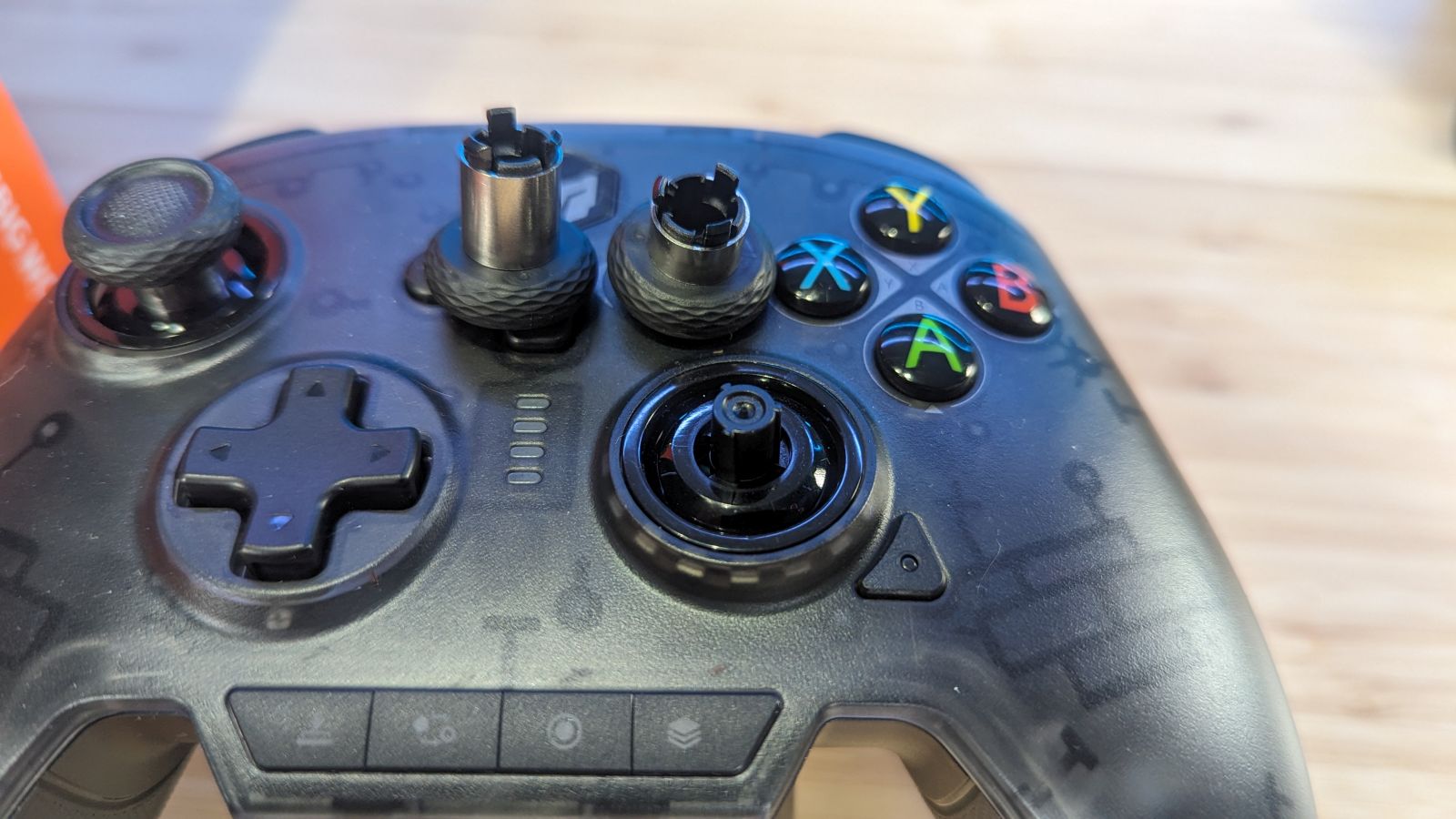 There are four additional sticks included with the Rainbow 2 Elite. All of them have an anti-slip covering, and each have a metal collar to ensure smooth movement, even when you hit the edges. The preinstalled ones are mid-height, but there are tall ones and short ones included as well. A taller stick, counterintuitively, results in less movement as a result. The idea is that you’ll be able to make more precise movements. This works well for strategy or simulation games. Conversely the shorter sticks are for faster movements, like a run-and-gun shooter. Much like the Hall Effect triggers, the sticks adjust the time until they actuate. The mid-height sticks are, as you might guess, in the middle. Changing these is as easy as giving them a solid pull, so they can be swapped out quickly.