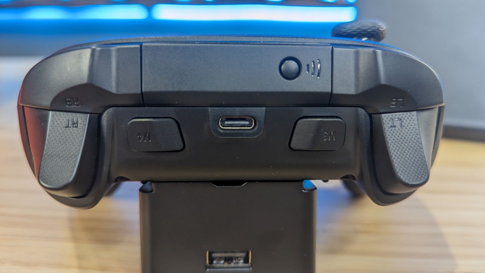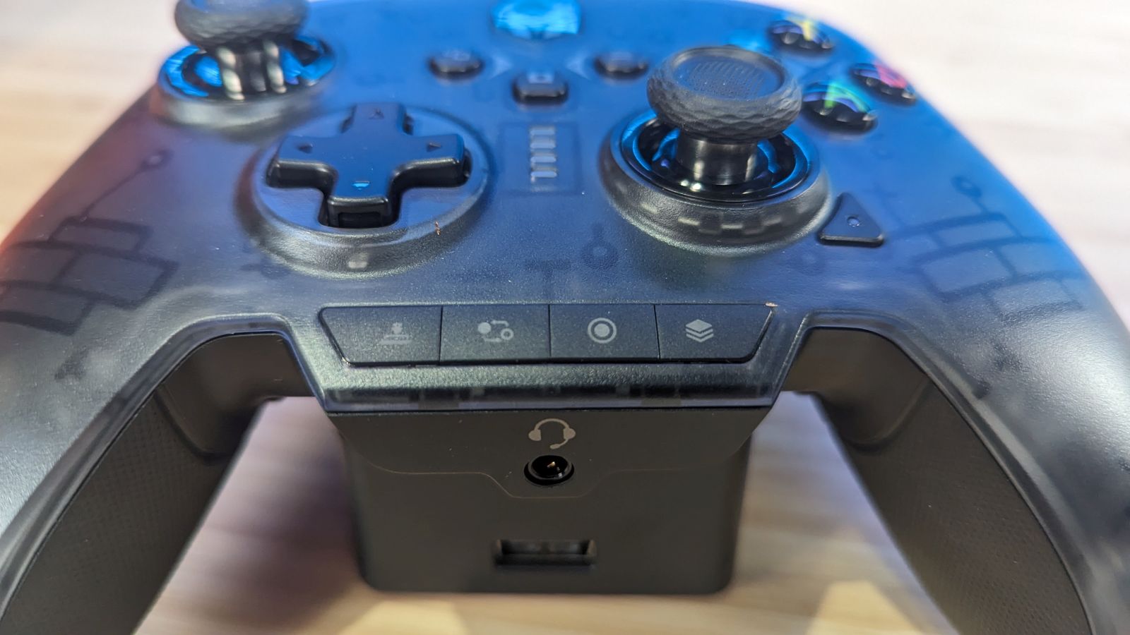 There is a dazzling array of buttons throughout this controller. It has the usual compliment that you’d expect on something derived from an Xbox controller, but quite a few more. Dead center on top is a dedicated screenshot button, for those games that support it. Tucked on either side of the USB-C port are two buttons labeled M3 and M4, and nestled underneath where you can hit them with your middle finger is M1 and M2. I want to point this out again – each of these are labeled. It’s such a simple thing, but most mappable buttons on these types of controllers have no label whatsoever, so seeing it here, now I want it everywhere. It makes it simple to understand what you are adjusting in the app when it’s clearly marked.