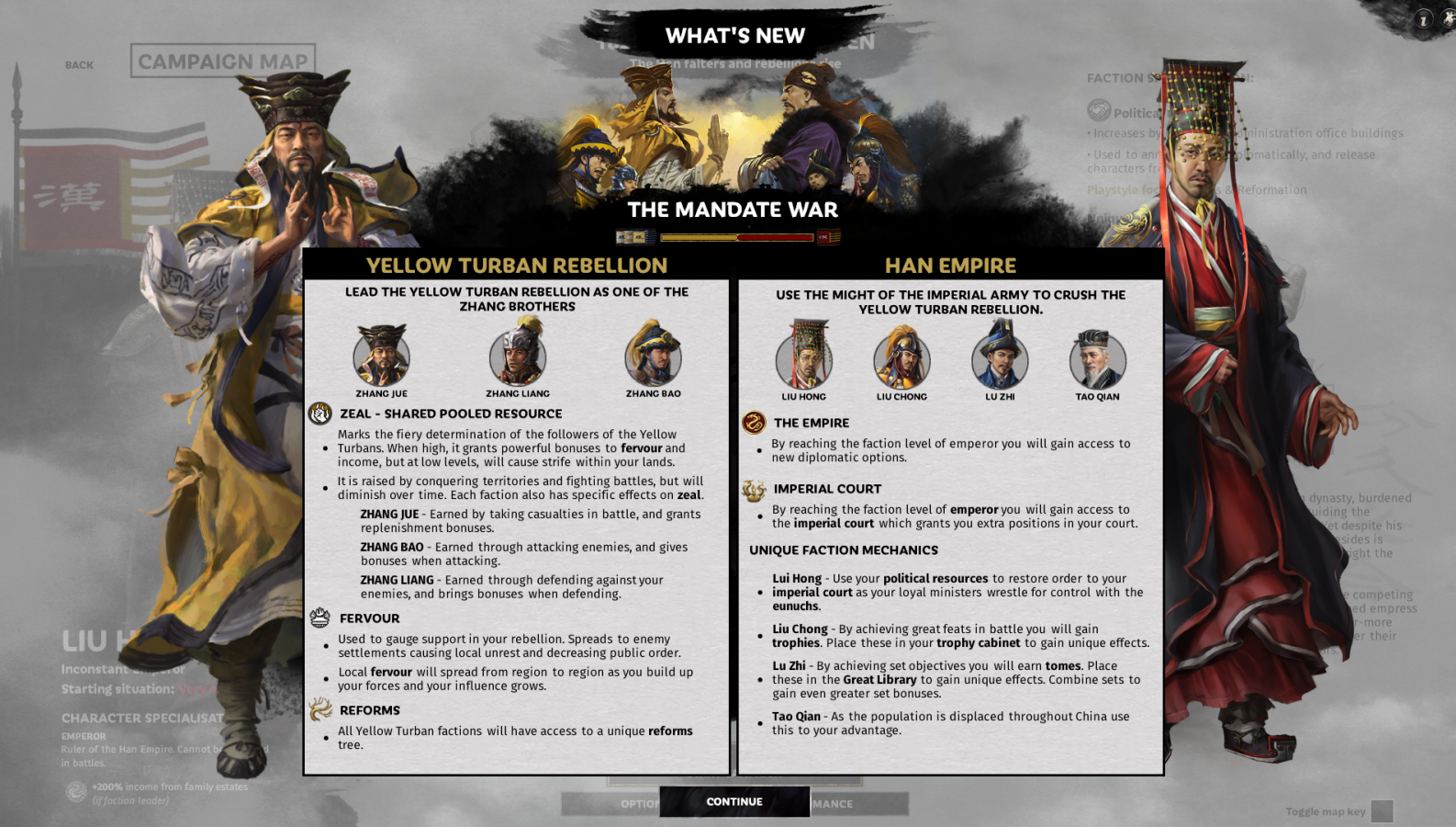 The quest to unify China was a long and arduous one during the Three Kingdoms period. Mighty warriors such as Cao Cao, Liu Bei, Dong Zhuo, and many more fought for control. Some had noble intentions, while others were greedy and corrupt. In the base game of Total War: Three Kingdoms, you may have already accomplished this task, perhaps multiple times. Now’s your chance to go back to the time leading up to the Yellow Turban Rebellion instead of just dealing with the consequences. Two of the biggest draws are the chance to play as Emperor Liu Hong attempting to save a collapsing empire or as the Zhang brothers leading the Yellow Turban Rebellion. These two new campaigns, along with a few other aspects make for interesting additions to the Three Kingdoms story.