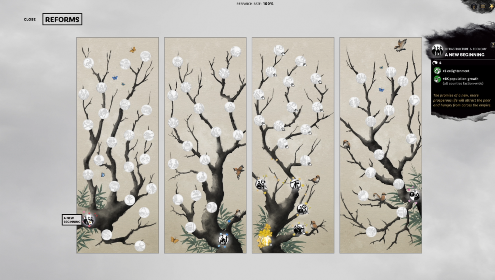 The three biggest differences for the Zhang brothers are the inclusion of features such as zeal, fervour, and a unique reform tree. Zeal is representative of your fighters’ resolve; you raise it by fighting and taking over territories. It lowers as time passes, so make sure to keep the fight going before your soldiers lose their will to fight. Each brother has their own bonuses earned from zeal: Zhang Jue grants replenishment bonuses from taking casualties, Zhang Bao grants bonuses when attacking, and Zhang Liang grants bonuses when defending. In a sense, all of your bases are covered as a result of the brothers. Fervour represents the support of the people. Disrupting the public order and inspiring the people to believe in your cause helps raise it. Conquering territories and growing in power are the best ways to accomplish this. As for reforms. you have access to a reforms tree that is unlike any other warlord’s. Use this special collection of options to your advantage in your quest to take down the empire. That being said, I found this campaign more enjoyable than the Han Empire side of things.