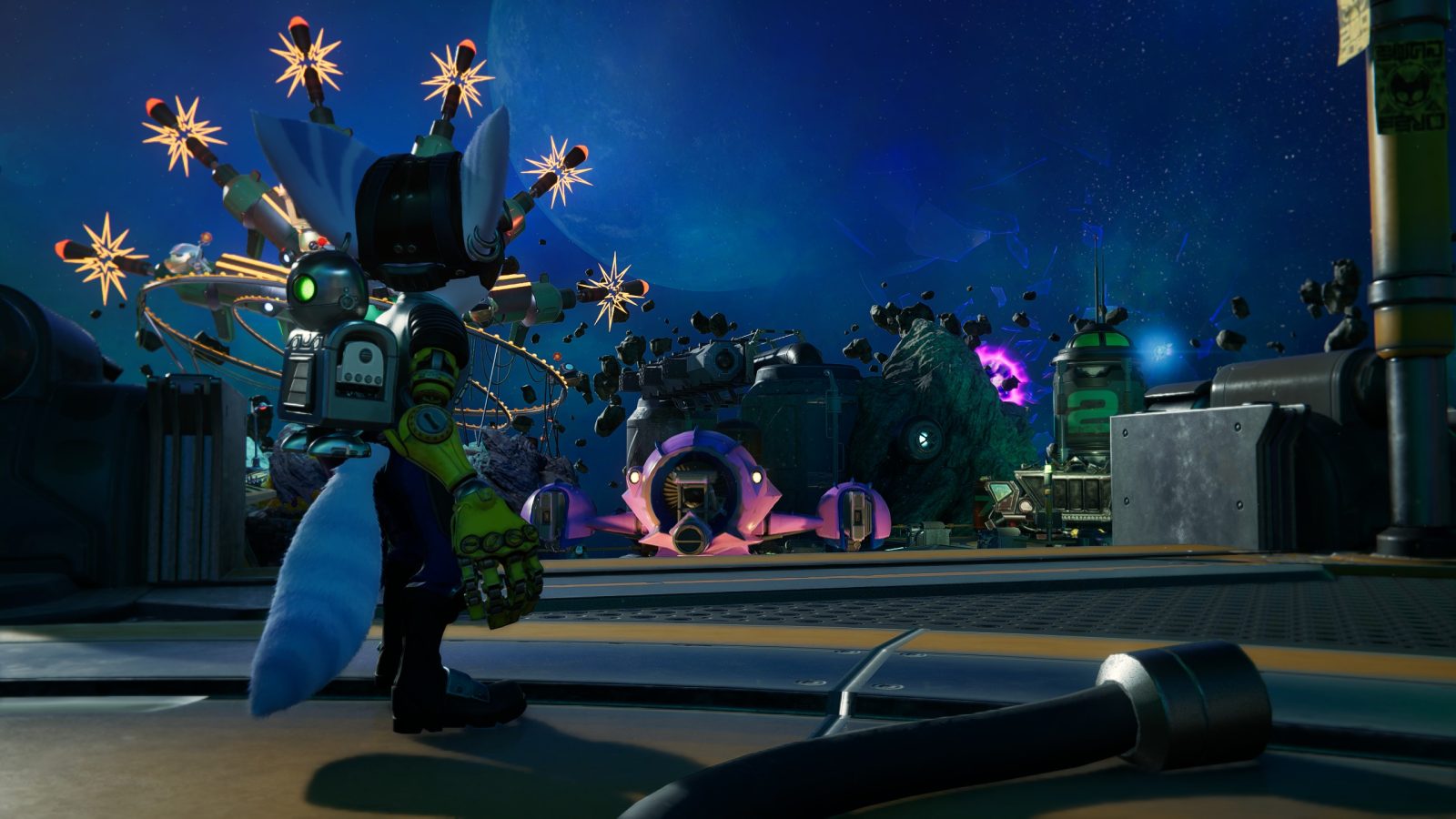 The second issue is the controls. Rift Apart’s arsenal was designed to use the DualSense’s adaptive triggers, allowing the player to half pull R2 for one shotgun barrel and a full pull for both. Even plugging in a PS5 controller, it just doesn’t quite work here. Triggers have a lot less force to them and the guns’ fire modes seem to have been changed to work with standard controllers and a Mouse and Keyboard. Rather than a half pull and full pull, the game checks for a short press or a long press. This is fine for most weapons, the Negatron Collider will always fully charge and the Blast Pistol requires a lighter touch for single shots, but something like the Drillhound makes using its lock-on impossible. Shots will still find their target, it just doesn’t have the same feeling anymore. Putting that aside, whatever control method you choose feels right at home here. Steam Deck is able to convey all the little vibrations very well and includes gyro aiming by default, my 8-bitdo gamepad is comfortable and seamless, and keyboard and mouse provide a much more fine tuned aiming experience (even if it feels blasphemous to play an R&C game like this). You’ll also find that all the accessibility and other settings made their way over perfectly, allowing anyone to change the game to suit their needs.