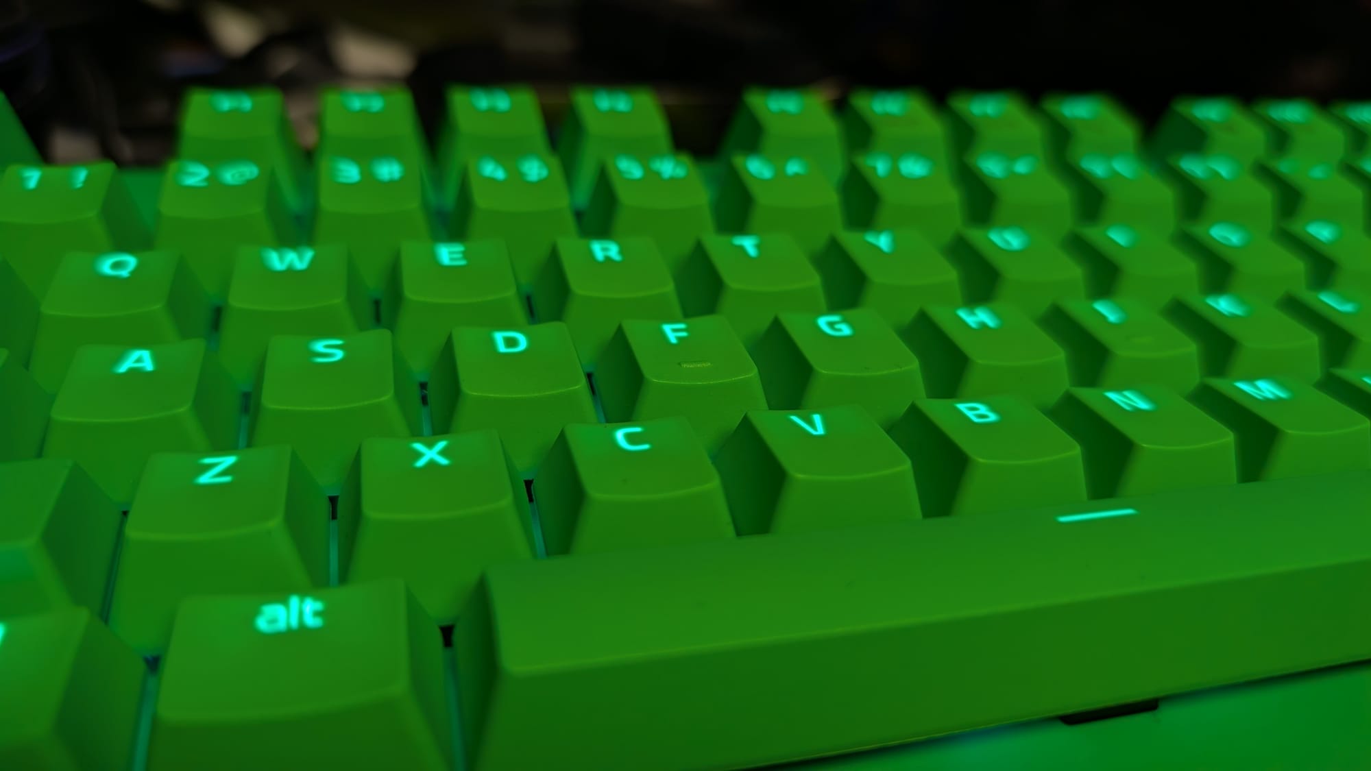 There’s something about this keyboard that’s simply striking. The aluminum top-plate looks fantastic, the keys are nicely spaced to feel comfortable while typing, and the rubber pads on the bottom keep it firmly in place. The two settings for the legs allow the Huntsman V3 Pro TKL 8K to sit at the perfect angle, so long typing or gaming sessions aren’t strenuous. Combined with the extra controls in the top right – two buttons and a dial – along with the LED indicator panel, make this an aesthetically pleasing and well-rounded keyboard. Oh, and the esports green variant looks spectacular.