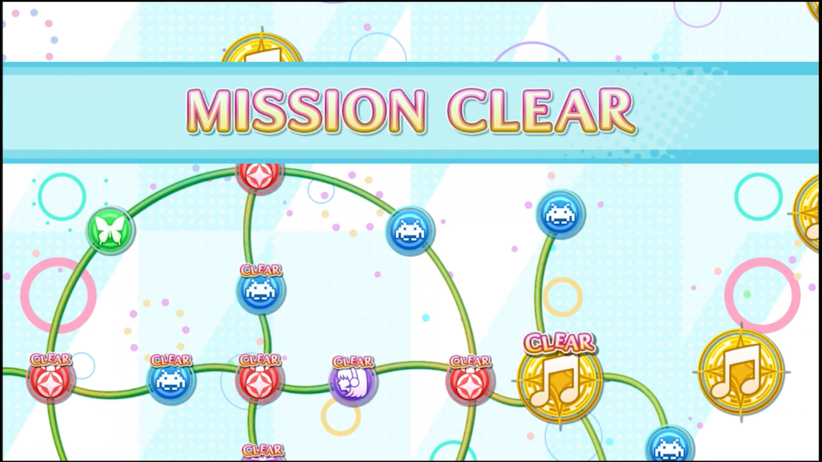 Groove Coaster Wai Wai Party!!!! does have a few more tricks up its sleeve to entice those who still play in the arcades, however. There are a bunch of unlockables, which grant you different avatars, songs, and even item modifiers; they’re all conveniently located in a missions sub-menu that you can access at any time. I like this sense of progression because it encourages you to try out different songs (as there are some missions like “clear X amount of songs in the GAME folder” or “get an S in a specific song”). It’s a natural unlockable system that’s refreshing and works better than a campaign would. You can also play a multiplayer session, which is great if you have friends over, and try out challenges where you have to clear a predetermined playlist of songs with limited health. These extra features will cater towards veterans of the series, but luckily newcomers that might not be able to land high scores can be able to complete missions using in-game currency, which means even if you only play through easy or normal songs you can unlock everything with enough grinding.