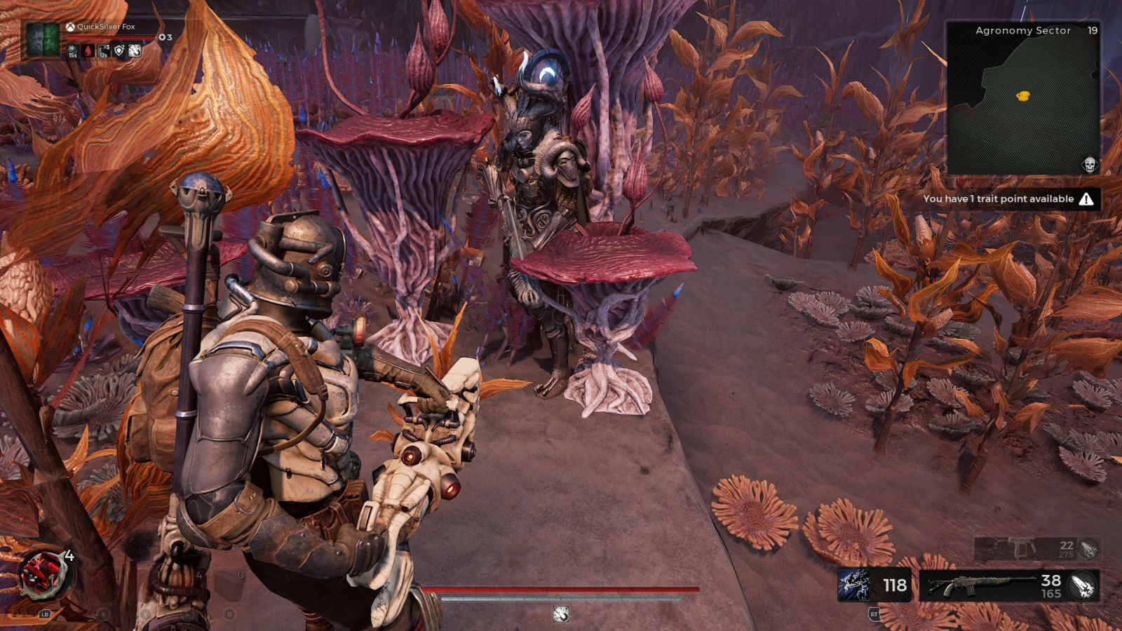 There is a good amount of side content to enjoy. I like all the NPCs I ran into, even if one of them tried to kill us after we helped him. The first NPCs we ran into was this robot that we had to put back together. I’m sure this thing has a name, but I just call him the unappreciative robotic jerk. After finding all of his missing pieces, he will be fully repaired! Finding the pieces was a bit more challenging than we originally expected because of how much searching we had to do. As a reward for beating this guy, you get a new trait and probably some irritation.