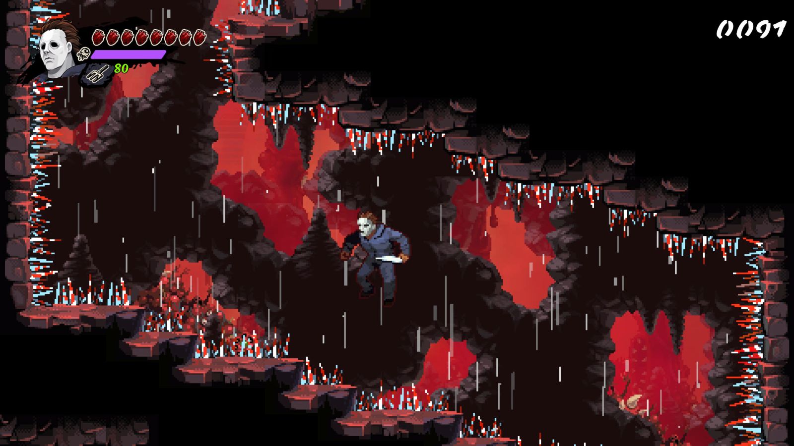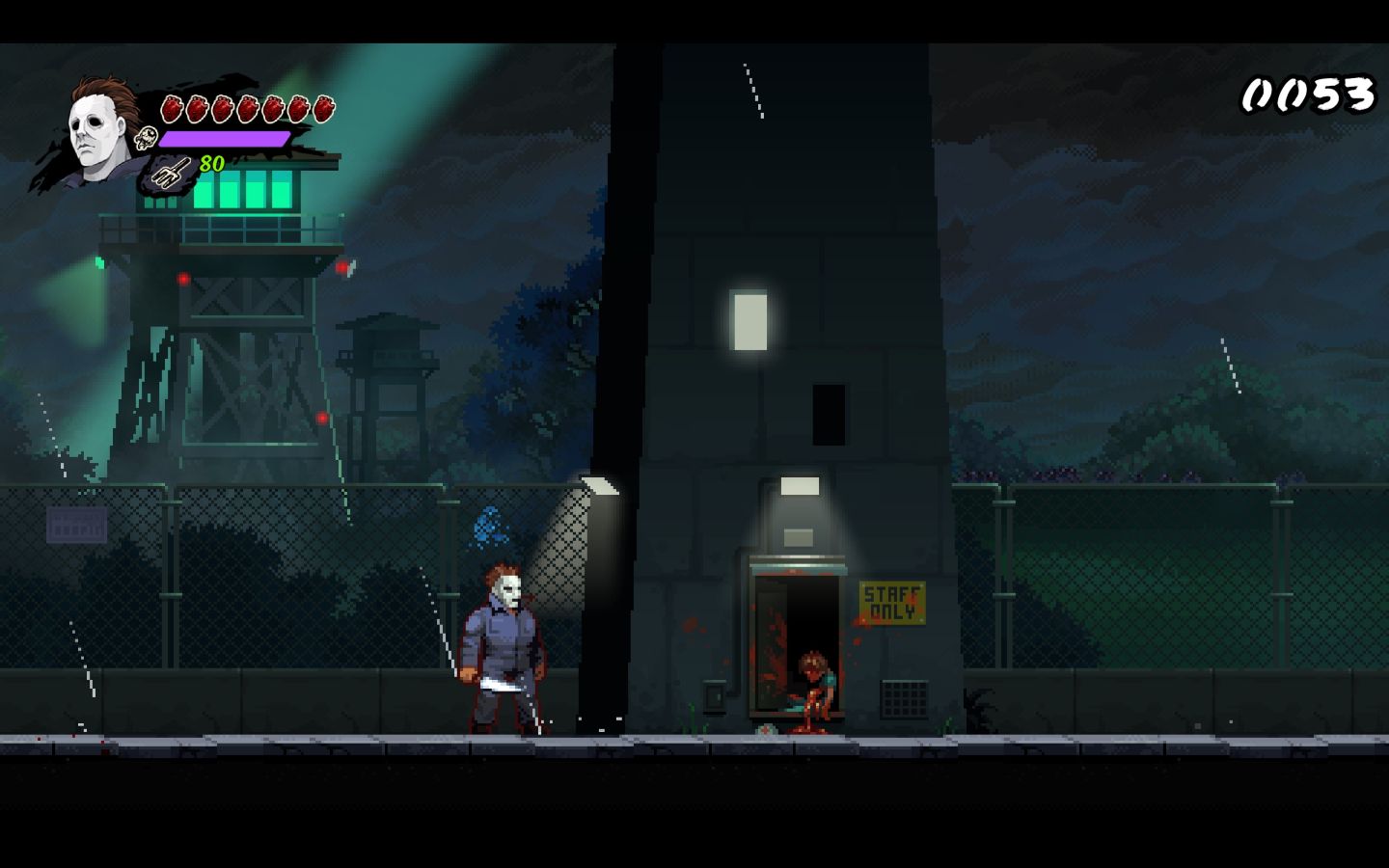 Despite being a huge fan of the Evil Dead series, I decided to tackle Halloween first, excited to continue the blood-soaked experience I had begun a few weeks earlier during my preview. Being able to step into the silent but deadly feet of Michael Myers is certainly an intriguing game premise, especially since Michael is the protagonist here rather than Laurie Strode. It’s a tall undertaking to translate Halloween, a slow, methodical, and suspenseful series, into an action-packed platformer, but thankfully RetroRealms did not disappoint.