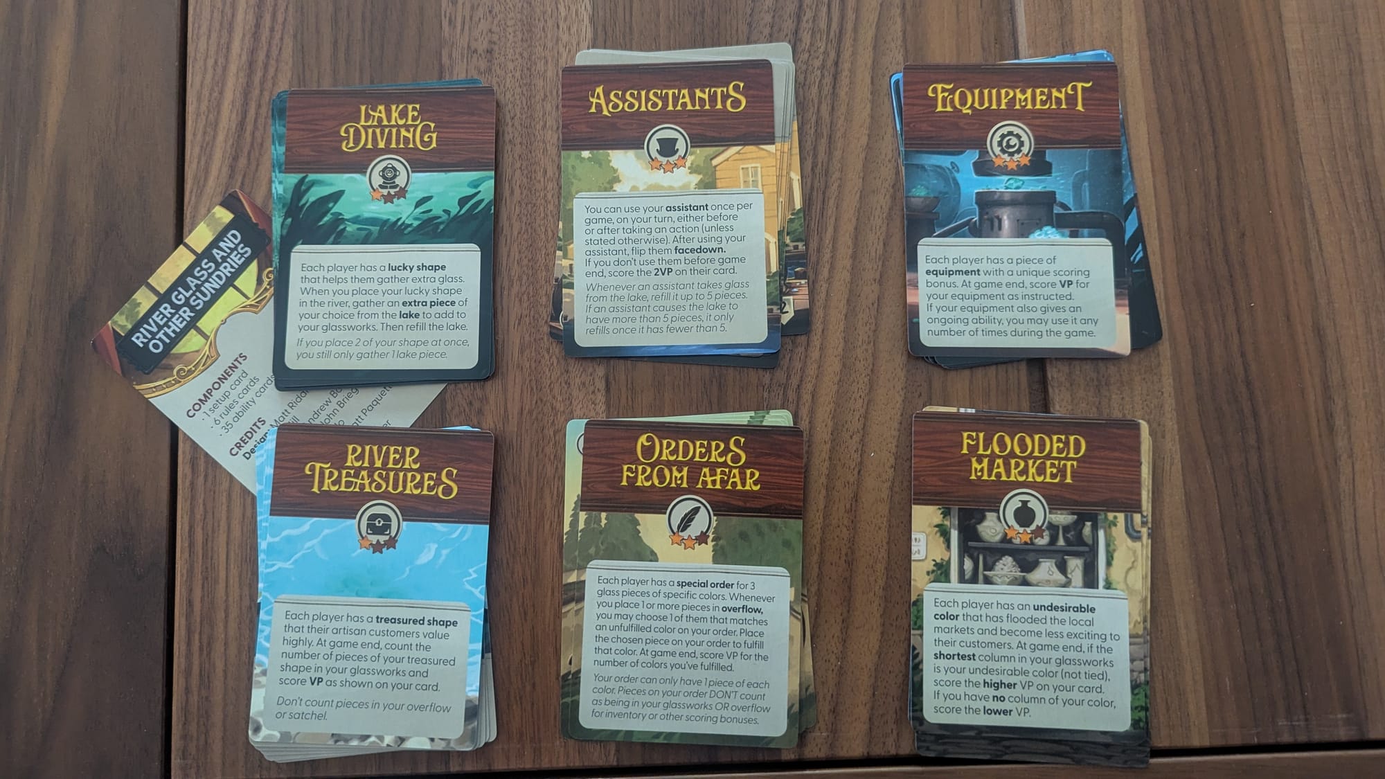 River Valley Glassworks is a simple game at heart, and after a few plays, you’ll have seen everything the game has to offer. There is also a tiny box expansion (River Glass and Other Sundries) that adds some much-needed additions to the game. Inside are six modules that add asymmetric player powers or new scoring conditions. This expansion is what made me love River Valley Glassworks. You can mix and match these modules in each game, depending on how many complications you want to add. This additional customization has let River Valley Glassworks shine with different playgroups. These modules add the right level of complexity while keeping the game light and fun.
