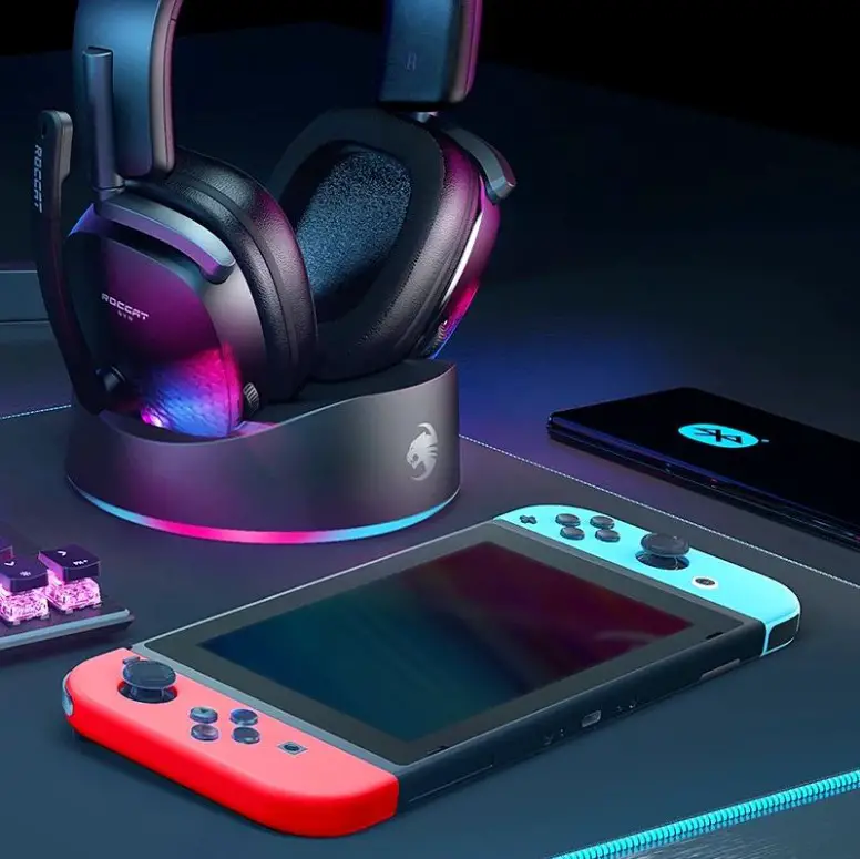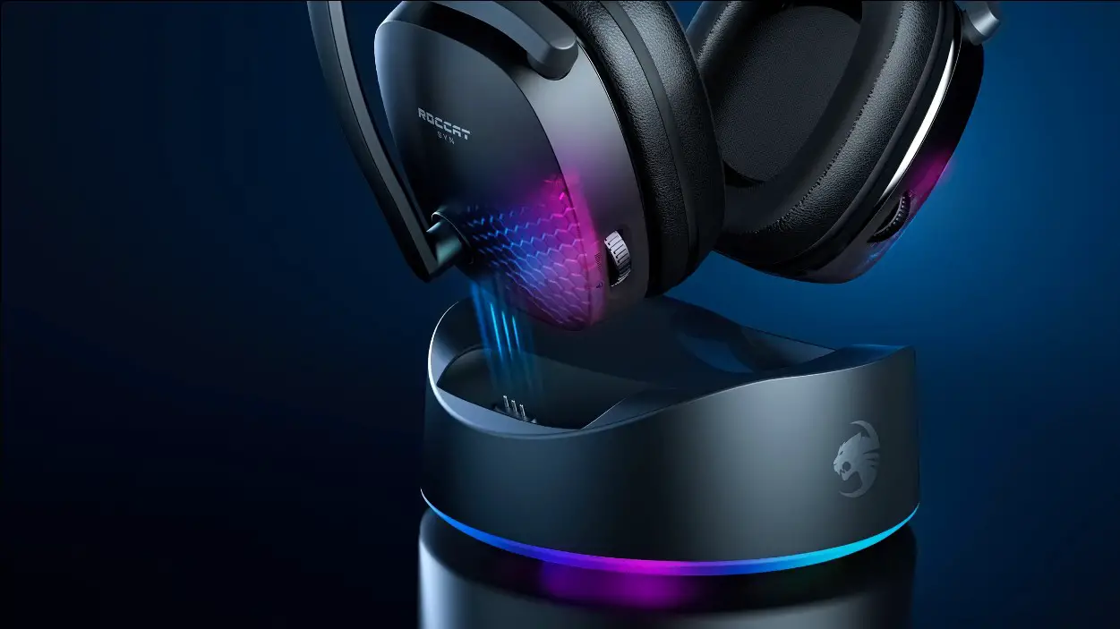 Lastly, let’s chat some RGB. The Syn Max Air speaks to the ADHD person in me who loves shiny things, but it’s not just slapped on there. The dock is certainly the draw, with a bright base plate that’s hard to miss. On the headset however, the very bottom of the earcups have a neat honeycomb design that the RGB emanates from. It’s more subtle than the dock, but can be customized via the Swarm software, and I love how it also matches the color and flow of the dock. Roccat didn’t go overboard with it, and I appreciate the nice touch it is rather than the mess it could have been, especially considering the stress the battery is already under.