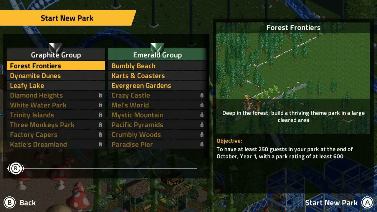 A combination of Roller Coaster Tycoon 1, all of its original expansions, and Roller Coaster Tycoon 2, along with all of its expansions. You are getting a shocking amount of theme park Management in this game. You’re adjusting prices, building roller coasters, hiring staff, naming rides, feeding guests, selling merch, and more. There are so many options and things to do in this game. I can’t help but be excited. Roller Coaster Tycoon 1 was a childhood Classic of mine so bias is definitely playing a role here. Let’s be honest. But sometimes you can’t top what already was the best. Roller Coaster Tycoon Classic takes all the content from those iconic games and expansions and gives you a much more streamlined experience on the switch. You can play the entire thing with a controller and for the most part, it works pretty well.