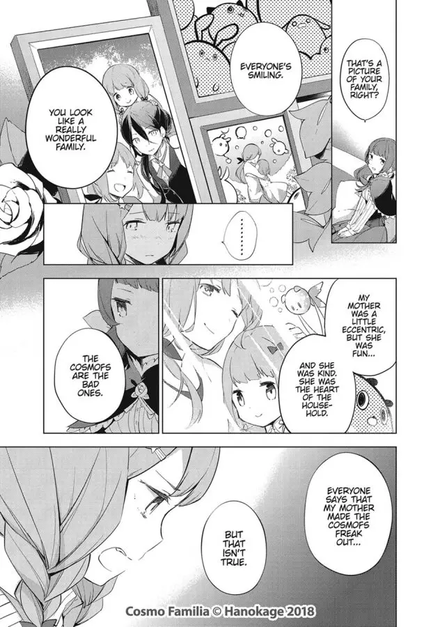 If there’s one thing I love about Cosmo Familia, it’s the art style. It’s skillfully drawn with a balance between slice-of-life family drama and action, with the latter starting to pop up around the halfway mark. When I found out that Cosmo Familia would be handled by Puella Magi Madoka Magica’s manga artist Hanokage, I was excited to see how a manga with a lighthearted art style would be twisted into a dark sci-fi experience. Here, I wasn’t disappointed, as by the end of this volume, the stage is set as a transformation occurs with one of the antagonists.
