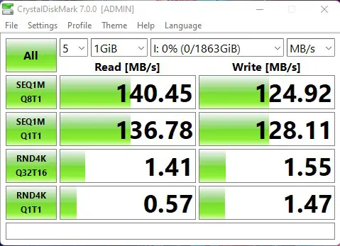 As you can see, the drive performs remarkably well for a mechanical drive. Likely due to the 128mb of cache doing the heavy lifting. When it comes to cache, more is better, with 256mb being the sweet spot, but as you can see the drive is very consistent. Running this benchmark multiple times yielded almost exactly the same results, as did running it again after dropping a full terabyte of data onto it. It’s nice to see that level of consistency.