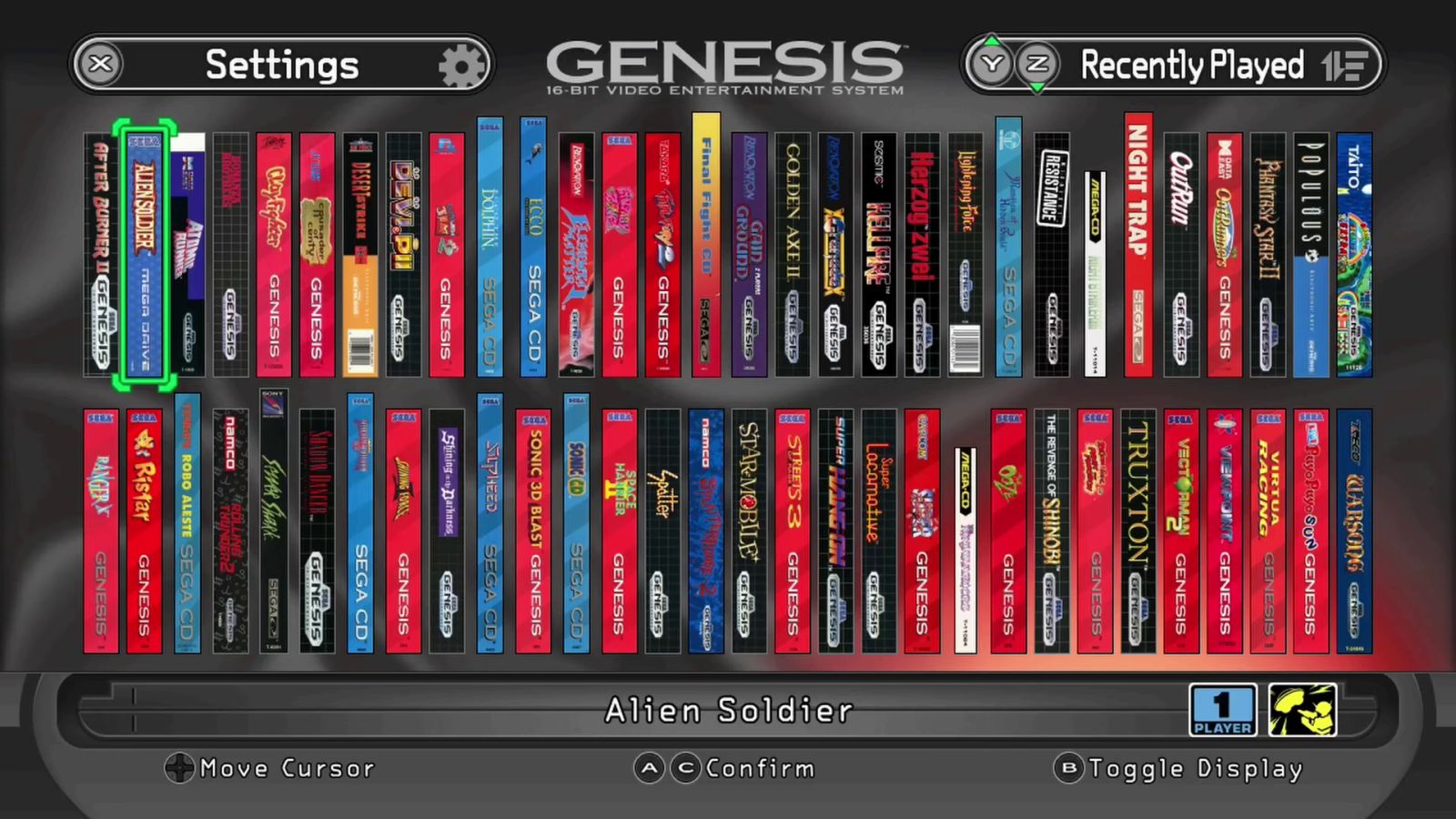 - Alien Soldier – This one is new to the United States from 80s mainstay from Treasure. In a time where characters lacked detail and were often super tiny, Alien Soldier goes the other way. Big (and bizarre) bosses, a big main character, big weapons – just BIG. It’s also a lot of fun…just know that it’s extraordinarily tough – you are gonna die. A lot.