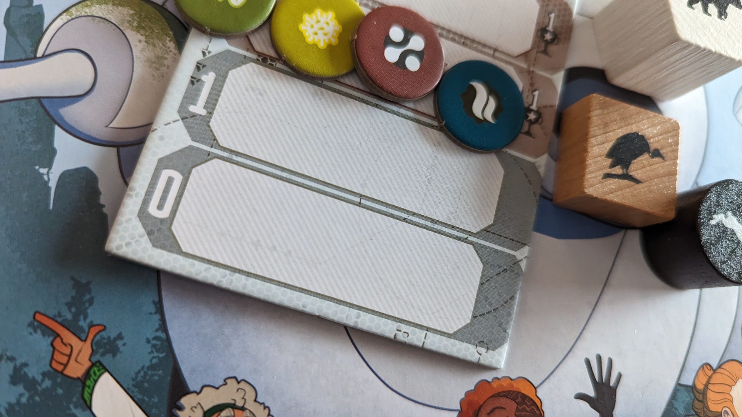 It’s worth mentioning how well Shapers handles implementing its mechanics. Shapers has my favorite form of asymmetry, where everyone is still playing the same fundamental game, and player powers are more incentives and opportunities to be maximized than direct buffs to a strategy or two that pigeonhole players into a certain playstyle. While other engine builders can easily become excessive to the point of overwhelming by the endgame, Shapers wisely divides your engine into 3 separate biomes, each with a limit of 4 cards, so running your engines feels good without ever being too much. Also, similar games will often flood players with resources, making the game more of a conversion efficiency puzzle, but Shapers keeps you starving until the end, making properly managing your resources in tandem with your engines the focus of your attention. I also need to recognize the ingenious use of resource tracks, especially in an engine builder where players will routinely be exchanging resources at a rate that would make grabbing and turning in tokens a chore. Finally, while I have mentioned that the art is meh at best, the choice to use big chunky pieces of wood is an excellent production choice that gives every action satisfying heft.