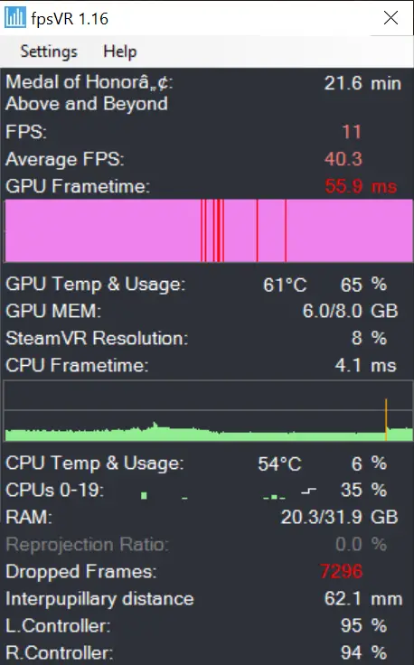 In the run-up to release, Respawn released the heady system requirements, and boy are they stiff. A 2080 equivalent and an i7-9700K will shut the door on a lot of folks, but I didn’t imagine I’d struggle with a 3070 or a 3080, even though my VR rig had an 8700K. I fired up the game and fpsVR reported frame times in the high 20s to low 30 milliseconds (it should be below 11ms for a smooth experience), so clearly it was time to kick things up a notch. Ripping apart my system I slotted in a brand new motherboard, power supply, 32GB of 3600Mhz RAM, an Intel i9 10850K, a Gen3 NVMe drive, and an RTX 3070 paired with my HTC Vive Cosmos Elite, I should be able to knock this one out of the park…right? The fact that I’m telling you about all this should give you the answer.