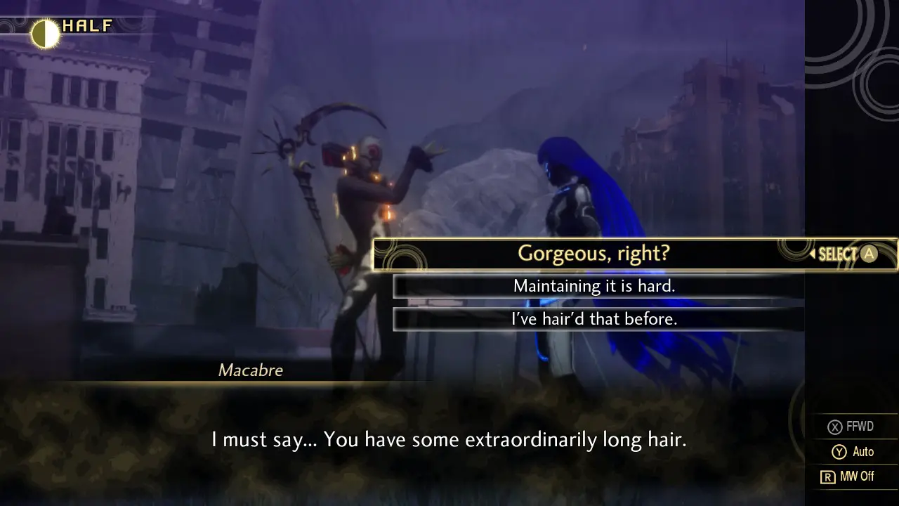 While I may have gripes with the characters’ writing and development, their designs are some of the best gaming has to offer. Kazuma Kaneko’s art style has always translated perfectly into 3D, but the demons in this game are on a new level. The game’s stunning visuals compliment these provocative and symbolic designs well, even if the characters are lacking in personality you can really get a feel for who they are with their look. While the main characters may not have been designed by Kaneko, they can convey quite a bit along with the top tier voice acting. In particular, I adore the Nahobino’s androgenous design, conveying that he is in between or outside all things rather than choosing a side. It would have been nice to be able to choose his pronouns along with this, but it’s still cool to see gender non-conforming characters.
