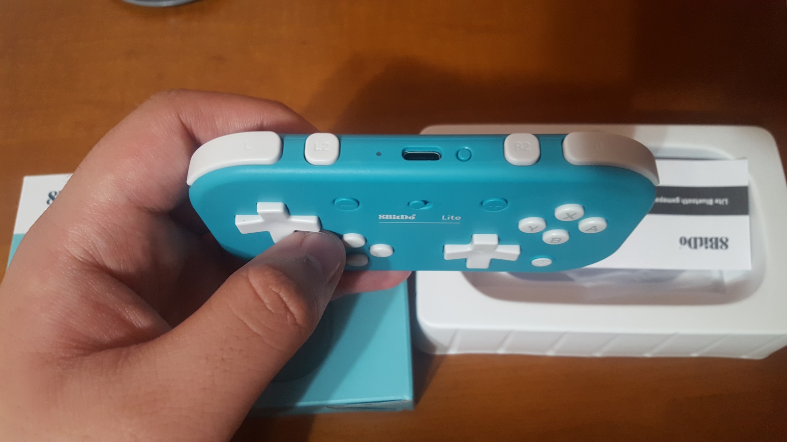 Like its name implies, the 8BitDo Lite is modeled after the Nintendo Switch Lite family of products, mainly the yellow and turquoise colors. Matching the shades of these two models, the controller complements your design choice should you decide to pick one up. As I have a regular model Switch, I didn’t get to bask in the glory of a color match, but I did fall in love with the overall look of the controller. It’s a flat rectangular design that has a card-like structure to it and weighs a piddly 84 grams. While that sounds pretty light (and it is), the whole thing just melts into my hands every time I grab it.