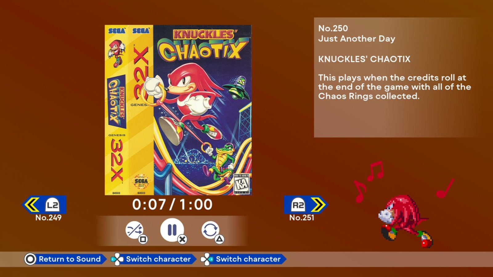 Sonic CD is likewise focused on platforming, but it’s twist on exploration makes it a lot more fun. Granted, CD still has its fair share of problems, in particular having to find Past signs to travel back in time then find the generator in every single stage to get the good ending, but I mostly enjoyed my time with it. Playing as Tails makes exploring a whole lot easier, though for some reason you can’t play as Knuckles here even though he would be a perfect fit for the level design. This version also has most if not all the features included in the PC version, such as both JP and US soundtracks (the former is way better, but the US intro Sonic Boom cannot be beat) and the D.A. Garden as an unlockable along with other things.