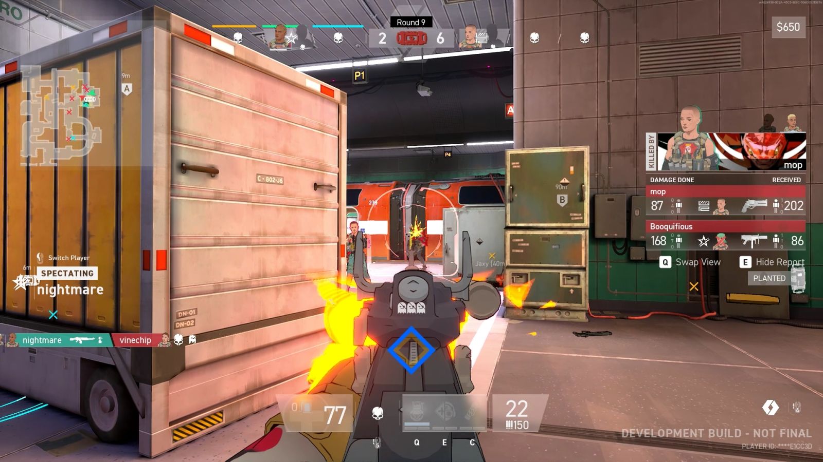 The game’s gunplay and selection might leave something to be desired, but the game does have some great convenience features. During the buying phase, you can instantly teleport and orient both bodies to wherever you please within the starting boundaries, and it’s labeled which body has which gun. You can also see where your teammates have positioned their bodies too, which makes coordinating and properly guarding objectives a breeze. Speaking of teamplay, you can see exactly where your allies are aiming due to laser pointers that are only visible to your team. I adore this feature, as in an age where it feels like fewer and fewer people are on comms anymore, it made coordination streamlined. My team and I could approach a bomb site tactically and without a word said by any of us.
