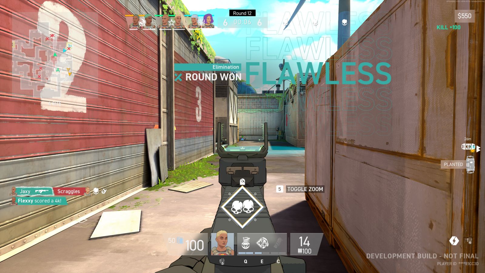 The Duality system is supposed to simulate having another player on your team by giving you a warning if your unused body hears footsteps. There were some moments where I was on an elevated platform just to drop down and make a loud “plop” noise, which led me to wonder if I had just alerted every spectre in the area. You have to slow-walk everywhere or risk being detected. Sure, you have to do that in Counter Strike or Valorant, but the turtle-like speed at which you crawl forward makes the game feel glacially slow. It also just feels cheap to be detected by an inactive body hiding behind a box while maneuvering to help your teammates fighting at the other bomb site. In other games, positioning a player in a niche area with the hopes of catching someone off guard would be a gamble; subtracting from the team’s cohesive strength in hopes that it pays off. In Spectre Divide, it’s the icing on the cake.