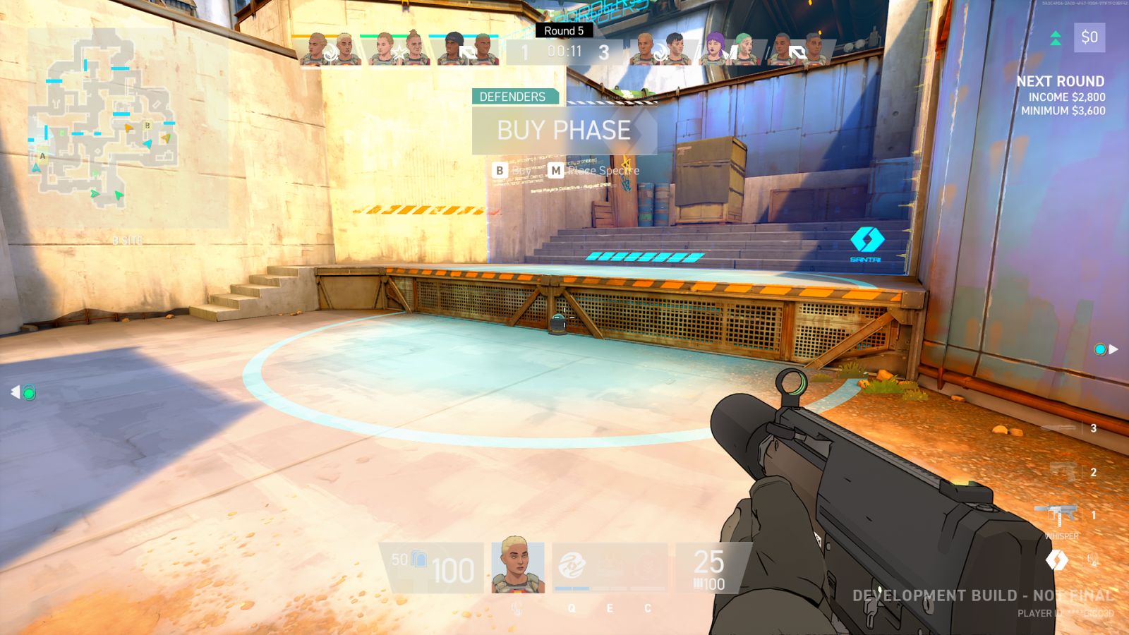 At the beginning of the round, you’re given about 25 seconds to buy charges for your sponsor ability, body armor, and a pair of guns for you and your spectres. There are five tiers of weapons, each of which have a keystone gun for your main body, and the choice of three separate guns that go to your spectre. To be honest, it feels like gun tiers get better by an order of magnitude. The first few tiers are save buys, and using them feels like a massive disadvantage over anyone who has tier four or five. The early tiers aren’t unusable, you can still get kills with them, but I found the vast majority of them unappealing and the tier four and five guns outclass them in every way. The reason for the disparity between the weapon tiers is a difference in handling. Early-tier weapons have recoil patterns that are strongly horizontal and awkward in how they punch. Then you have the automatic rifles of tier four, which feel smoother with the exception of the Reaver, which is a one-shot headshot, so its harsh recoil is understandable.