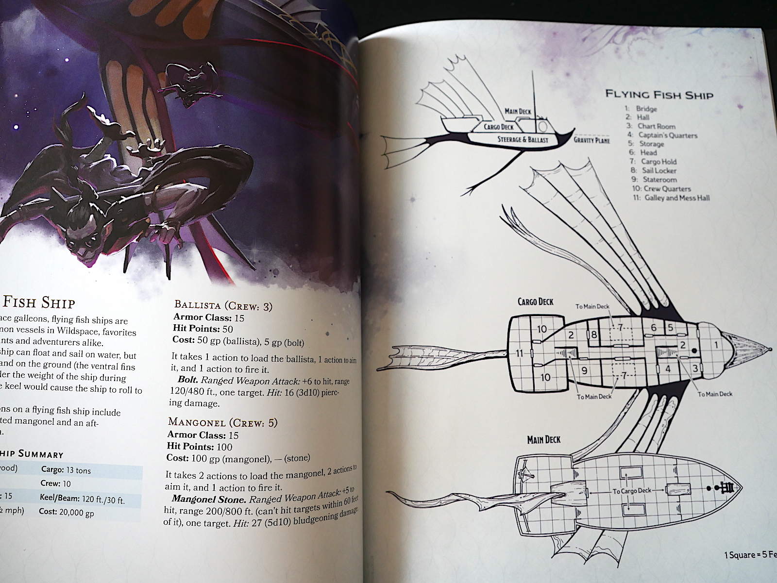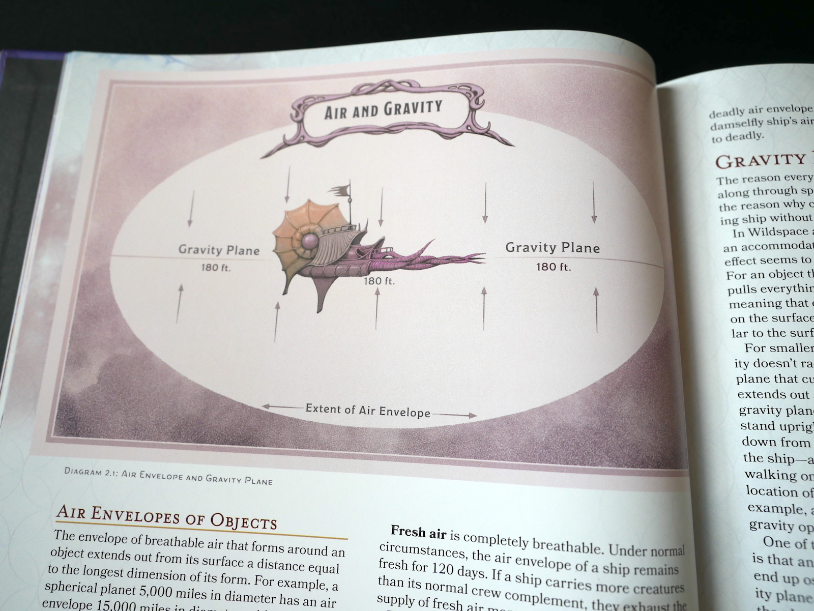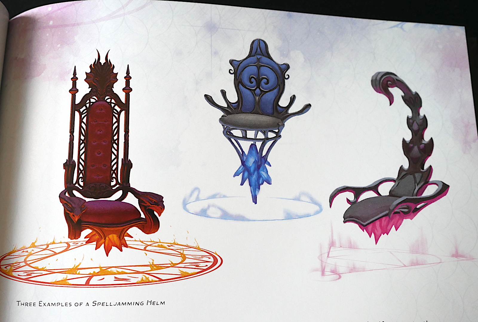 STEVEN: It’s a conundrum really… There is plenty of source material to draw on from the previous editions to fill multiple books. From published adventures and the boxed set, you can get tons of info on creating systems, strange worlds, different kinds of ships, spells, magic items and creatures. Instead, we get a wavetop introduction to all these ideas spread between three books. With the thick covers removed and the thick pages slimmed down this could easily have been one 190 page book. Comparing this to the Wild Beyond the Witchlight, a 356 page adventure that provides essentially the same content but for the Feywild and better done – Spelljammer falls short. The content just doesn’t support splitting it into three tiny books.