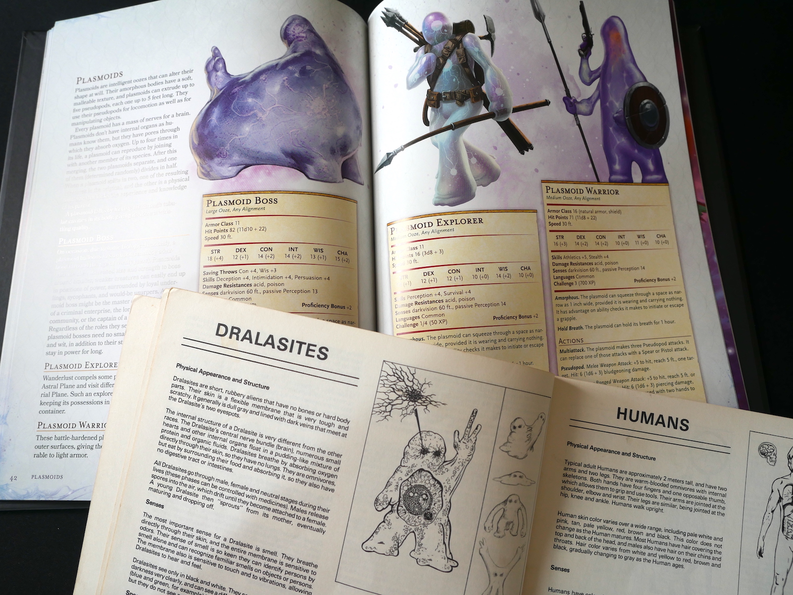 STEVEN: The books are high quality, with thick lustrous pages full of beautiful artwork. I cannot stress enough how nice the art is in these books. Like many other fifth edition publications, this Spelljammer comes with alternate artwork covers which are nice. The coloration and finish lends a lot to the alternate covers, the art is a little plain to my eye. Other than art, the books also have some excellent content. The Astral Adventurer’s Guide explains the basic cosmology, how flying from world to world works, hands players two new backgrounds, several races and a few spells to work with, and provides the Dungeon Master and players with the Rock of Bral – a space base. Boo’s Astral Menagerie is a Spelljammer extension of the Monster Manual. The final book is an adventure for 5th level characters designed to introduce them to Spelljamming called Light of Xaryxis.