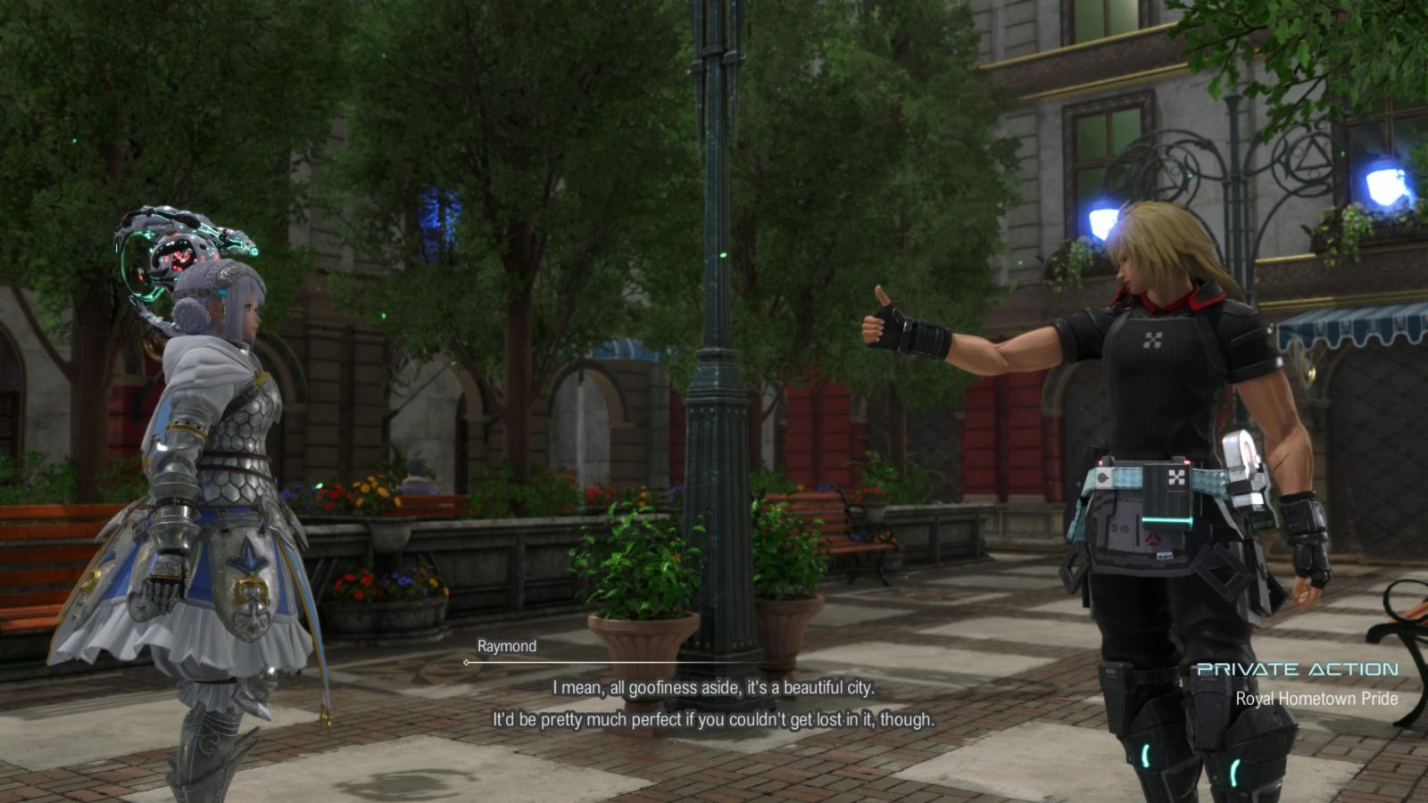 As a final note, I want to touch more on the Dual Protagonist system. I really like having this option in games, but after playing Laeticia’s story, it feels like more focus was put on Ray during development. Some scenes are from his perspective regardless of who you picked and a few cutscenes will even fade back to gameplay on Ray only to jarringly cut to Laeticia. She does witness certain events that Ray doesn’t and has her own set of Private Actions (character building scenes with members of the party), but I can’t help but compare it to Tales of Xillia, a game that did this gimmick much better