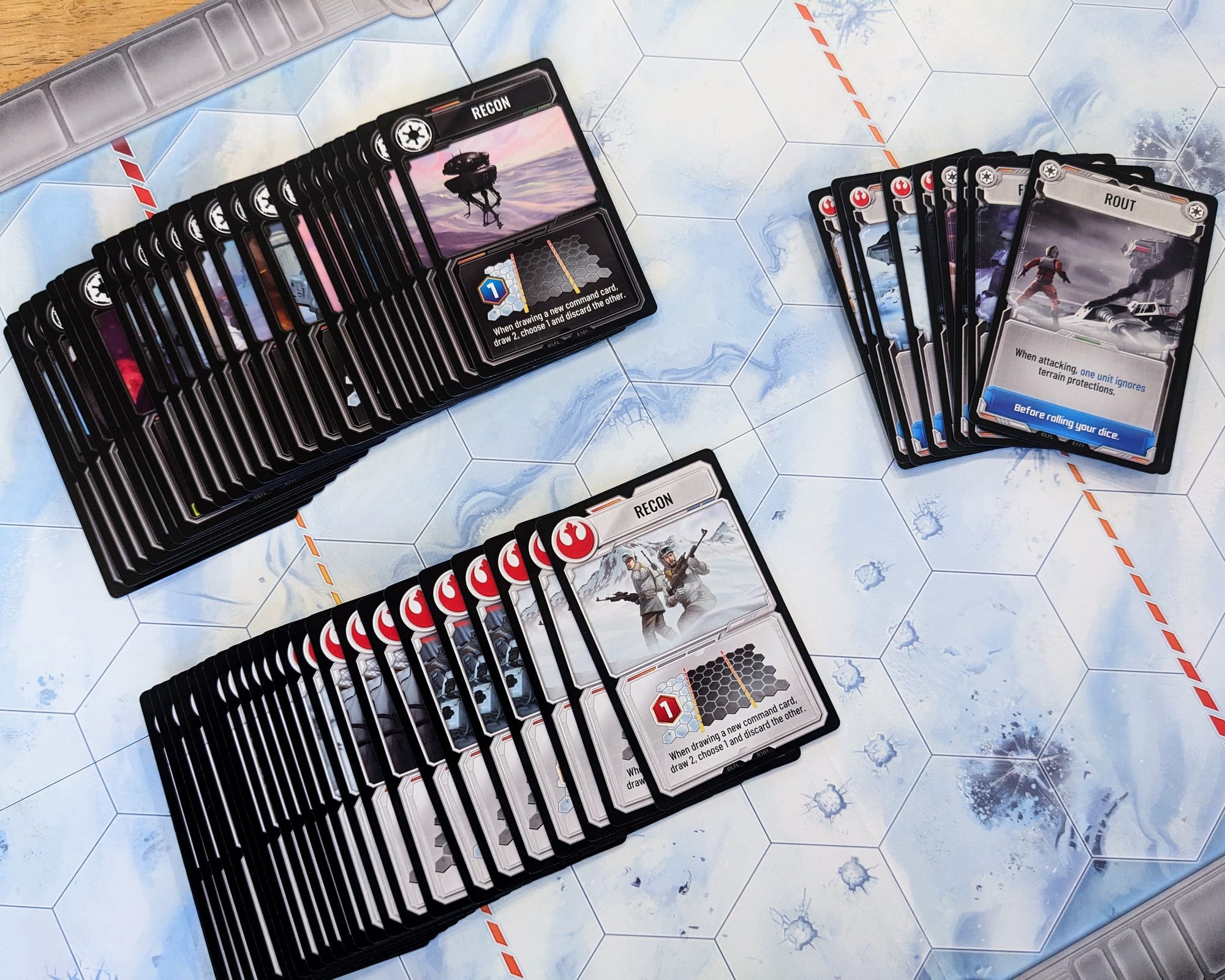 Like the Star Wars: The Deckbuilding Game, Battle of Hoth is easy to teach and tough to master. Timing is everything with the command cards, and it’s important to select the right commander for the right mission. I chose General Veers, who favors vehicles, for Scenario #1, and that didn’t help me at all. Luke Skywalker’s command cards are pro-snowspeeder, so it really made a difference for getting those early, fast attacks in against me in Scenario #2.