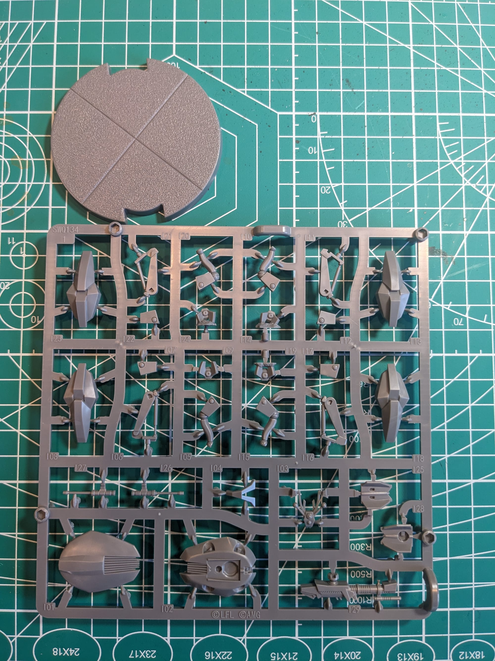 Each model comes on its own sprue, which are part of the new ‘connected sprue’ designs from AMG. This is such a great design because it prevents the sprues from bouncing around inside the box, potentially damaging the smaller bits, like the eye stalks and gun barrels. The instructions are pretty straight-forward and you’ll want to stick to the order. There isn’t any option for customization other than the weapon choices, so you don’t have alternate poses to work with (unless you start Frankenstein-ing them). Given their size, they are rather light, with a majority of the weight being in the thick base.