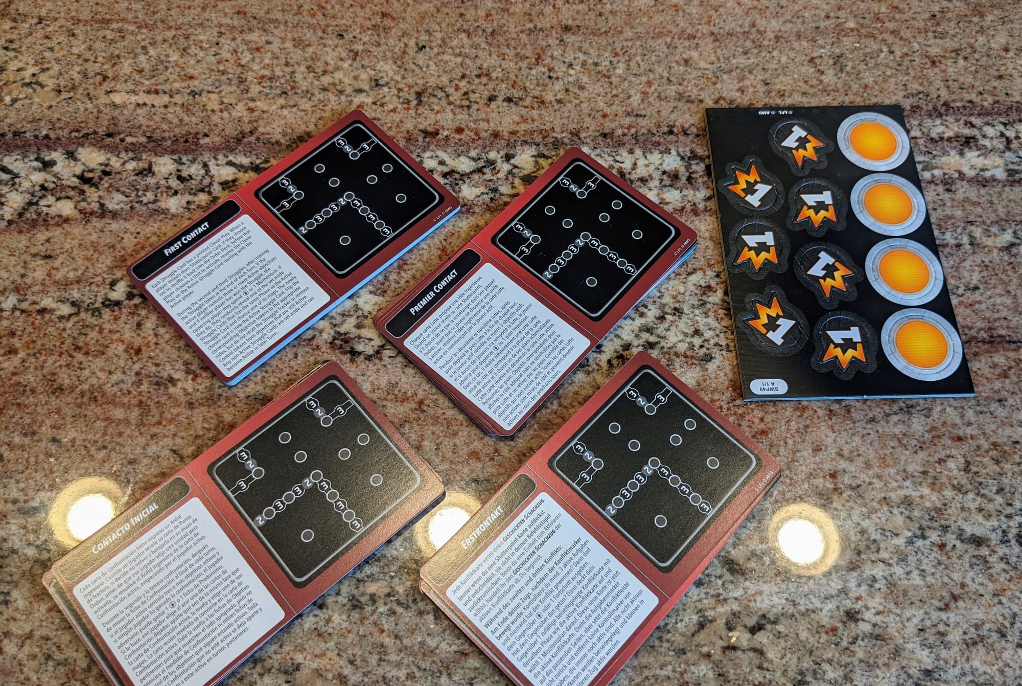 Each pack comes with sets of each of the languages, plus extra tokens for the mission.