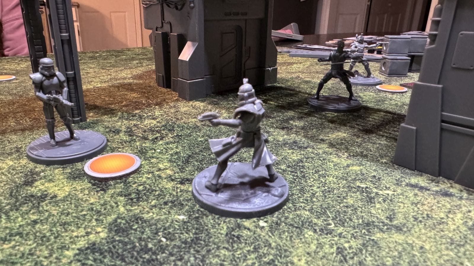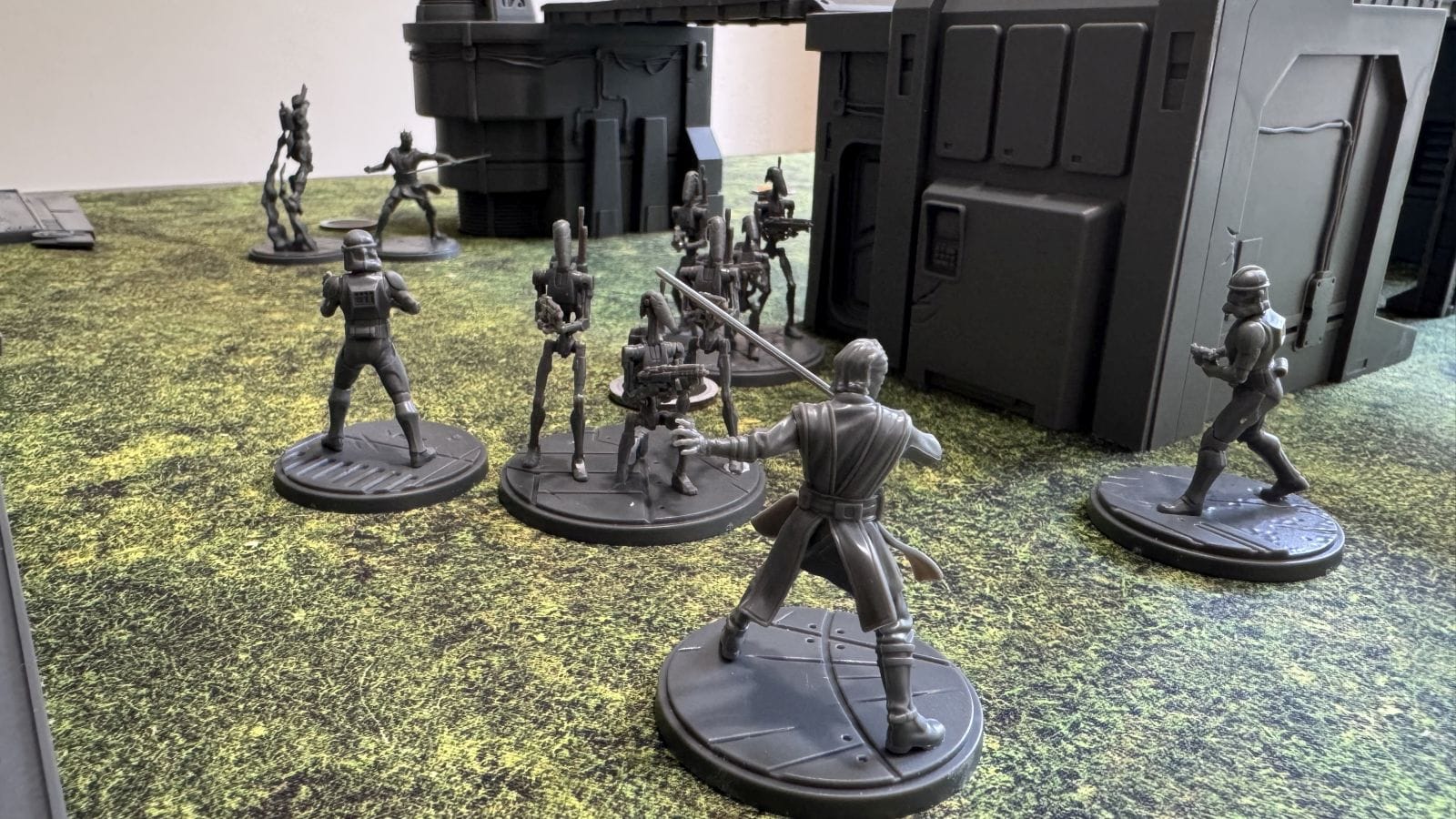Controlling an objective is done by having the most non-wounded characters contesting the objective. It’s pretty hard to actually kill a unit in Shatterpoint and remove it from the game, but wounding them is doable. When a unit is wounded, it essentially doesn’t count for anything anymore until its next activation, when it heals and becomes Injured. Injured units are back in the game and operate normally with the added penalty of their abilities that cost Force Points to use, costing an additional force. Since it’s hard to remove a unit from the board, the game gives you plenty of tools to move units around to try and get them off the objective. Force pushes and pulls, and various shoves are all useful to gain control of an objective when wounding or killing a unit isn’t an option.