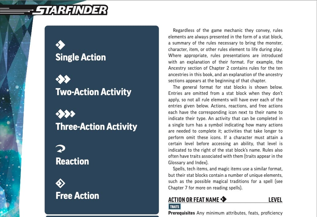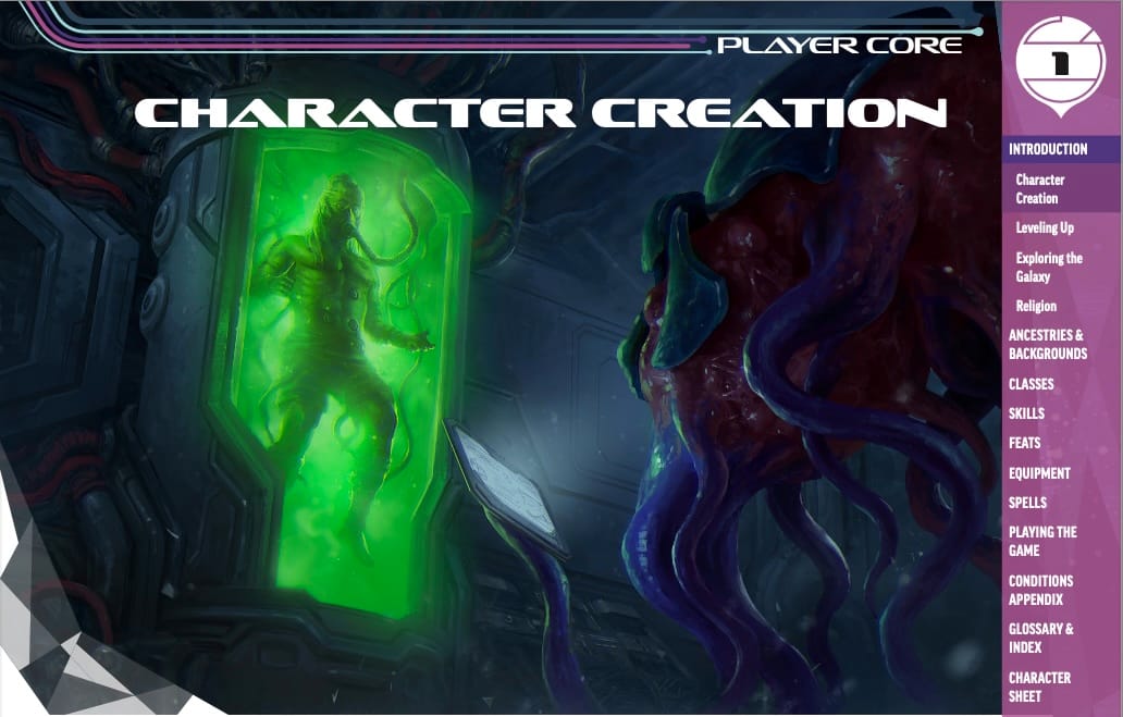 Dan: The Starfinder 2E Player Core outlines its content in a way to get players hooked with what the system is, getting them creating characters, and then an overview of how gameplay works.