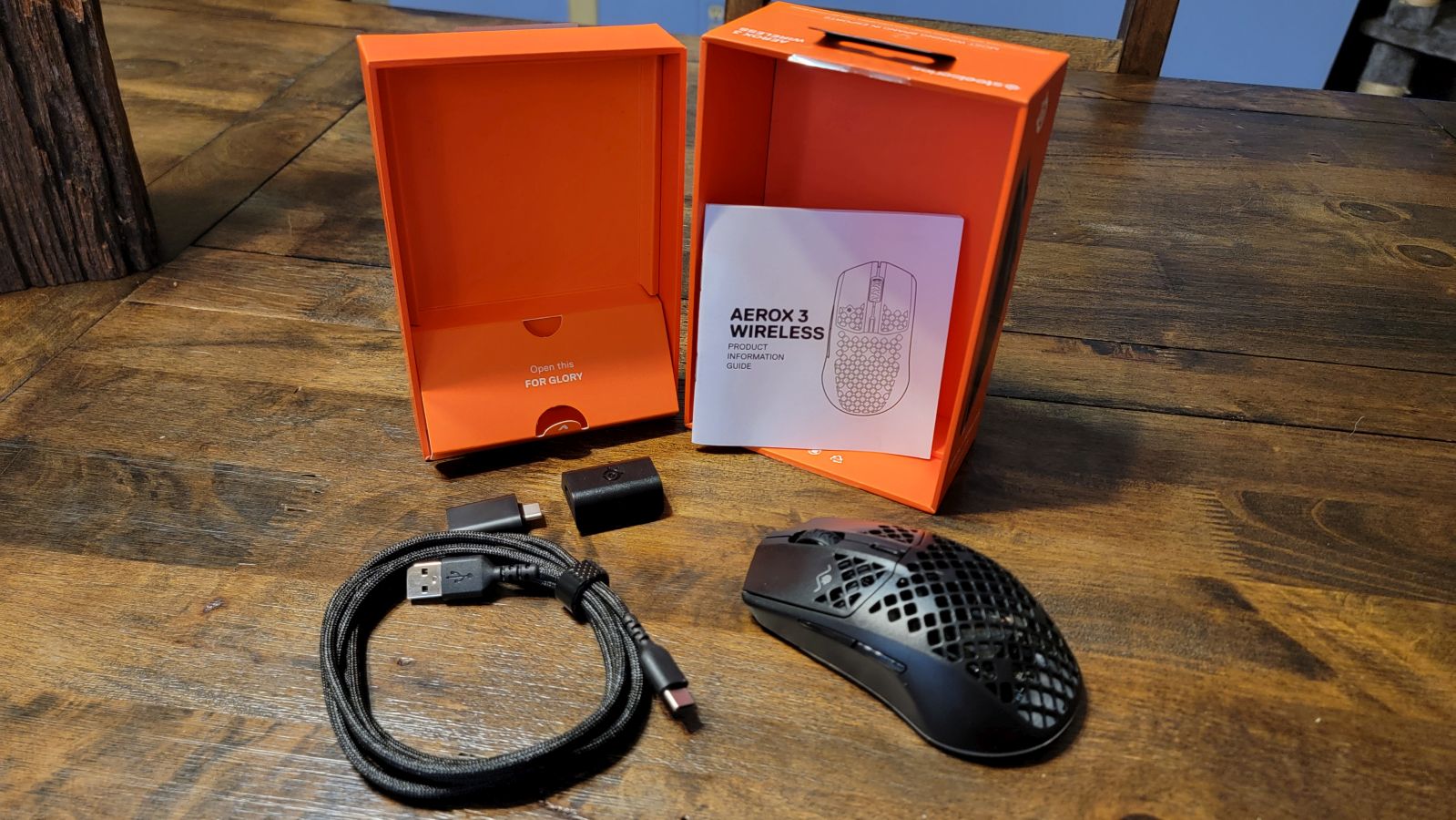 A few other details for those interested: The Aerox 3 includes a SteelSeries TrueMove Air optical sensor, 100-18,000 CPI, 400 IPS, 40G acceleration, 1000MHz / 1 ms polling rate, ABS plastic core construction, 6 buttons, rated for 80 million clicks, 68g weight, Bluetooth 5.0 and 2.4GHz, up to 200 hours of battery life with bluetooth and 80 hours with 2.4GHz, and OS compatible with Windows, Max, Chromebook, Xbox, and Linux.