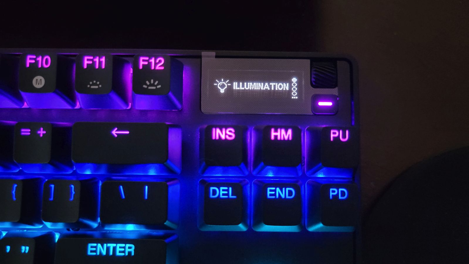 If you’re anything like me, you may look at these pre-sets and immediately become wary of the work required to toggle between them. Thankfully, SteelSeries has made that process simple by utilizing a built-in OLED smart display on the keyboard itself, which allows you to adjust your settings quickly without having to do anything on your PC. Simply hold in a button and then scroll through the various settings with the included scroll bar.