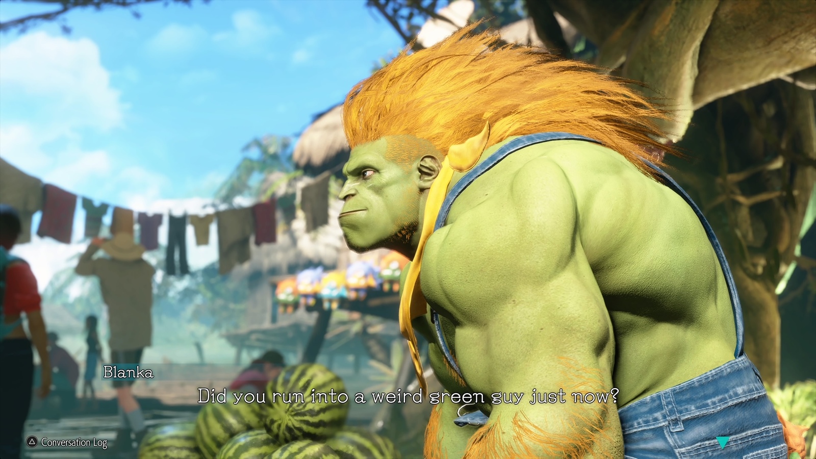 About the only classic character that I think suffered in this shift in aesthetics is Blanka. Blanka should look scary in a wild, feral sort of way. In Street Fighter 6, I find him scary because he looks like an uncannily real ape man. Later iterations of the character (including Street Fighter 6’s) portray him as a cutesy, goofy character, but that also doesn’t read well in the more realistic style. Whether they aimed for a ferocious monster man or a lovable oaf, I don’t feel like his design here does either side of that equation justice.