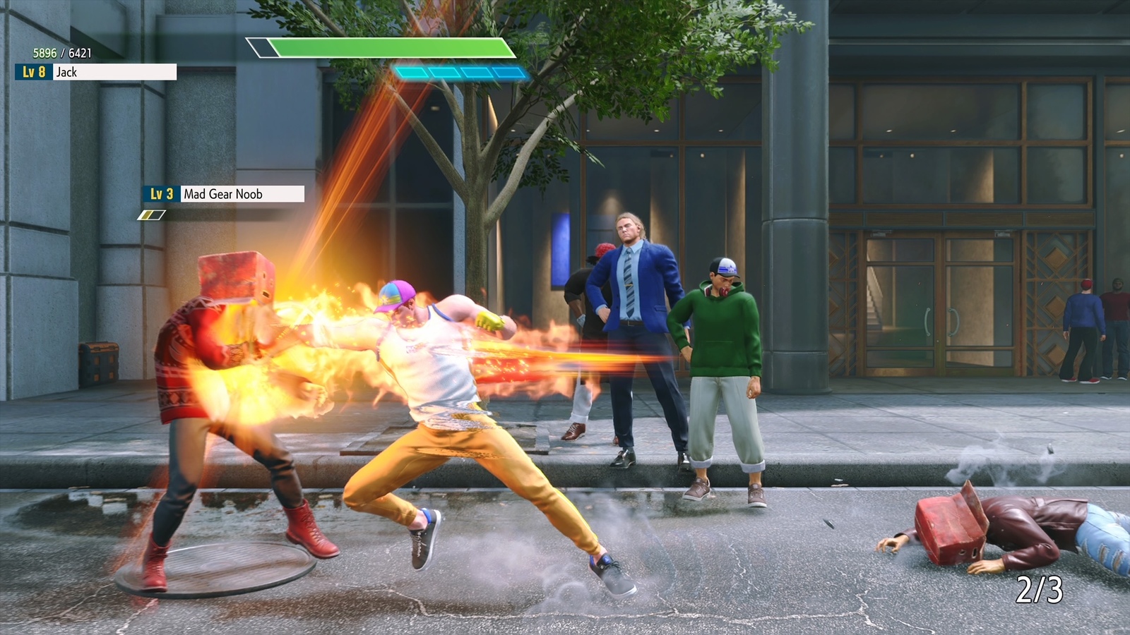 Some enemies do change things up a bit. A handful of tougher “boss” opponents will use particularly tricky attacks or rely on some stage gimmicks. While most enemies are standard humans with even more standard attacks, World Tour occasionally sprinkles in some unexpected opponents. Drones and even sentient fridges will join forces to give you a run for your fight money. Despite all of these gimmicks, however, the encounters honestly blend together.