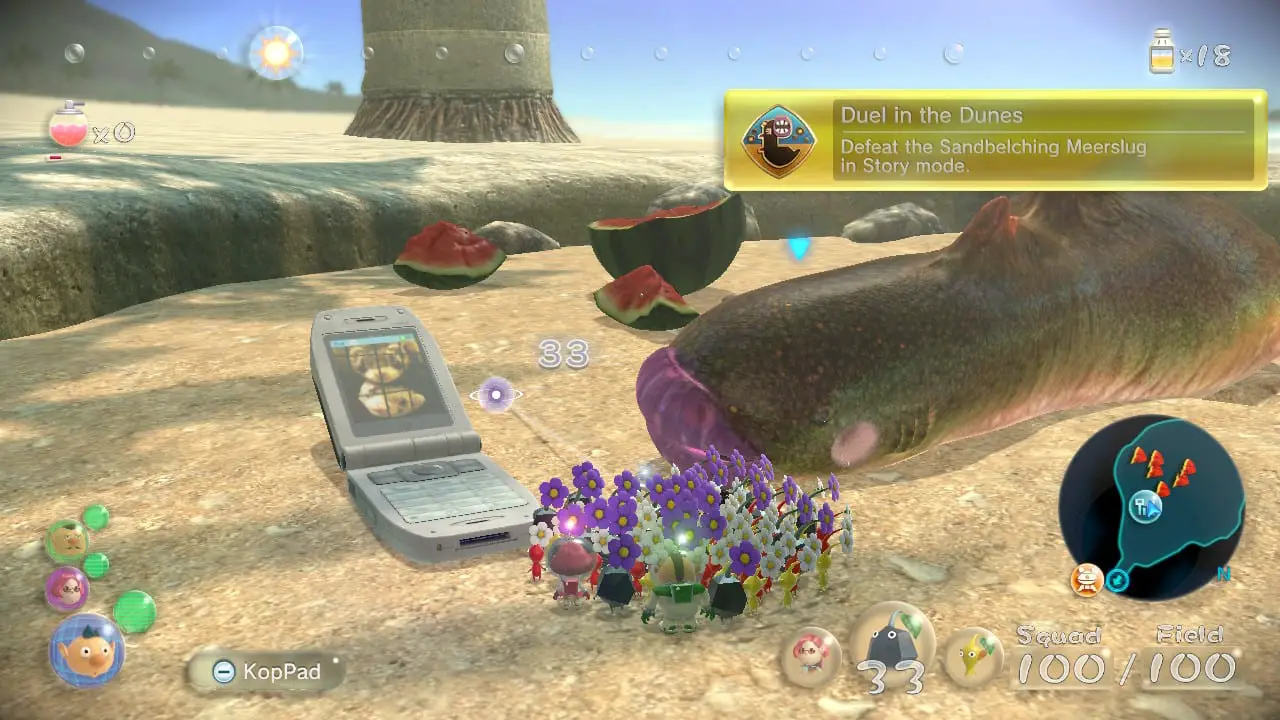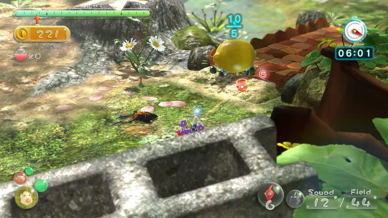 Lock-on is leagues better than it was on the Wii U. The screen doesn’t focus entirely on the target and there isn’t an intrusive hub that makes it harder to see your Pikmin army. It’s just a simple lock-on that’ll allow you to throw your Pikmin quickly and precisely. Another change is that you don’t have to lock onto an enemy to charge your Pikmin.