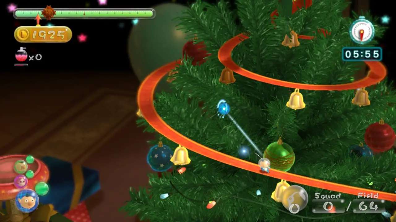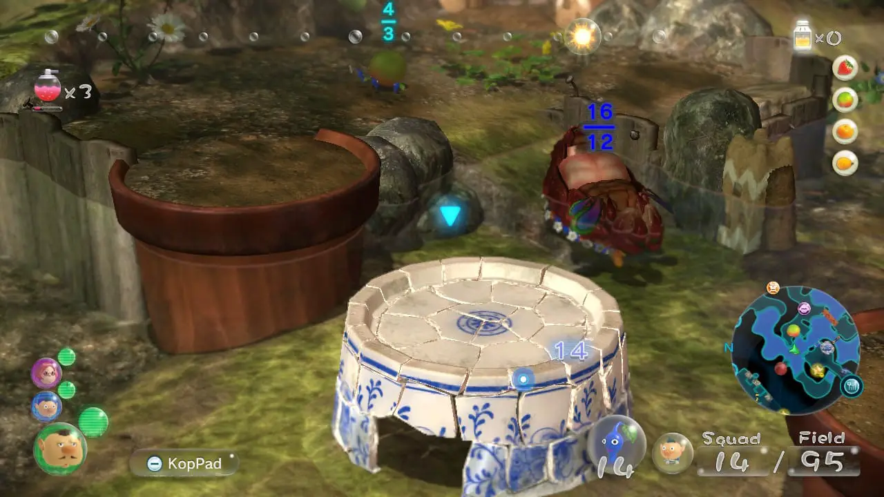 The story remains mostly intact. You control three captains from the planet Kopai, which is on the verge of disaster due to a food shortage. You’ll have to use the Pikmin to collect large fruit to convert into seeds and take back to your home planet. The sense of urgency feels in-between the first Pikmin’s “find 30 ship parts in 30 days or die” and Pikmin 2’s “find the treasure to pay off your boss’s debt before loan sharks beat him up.” Though, it’s unfortunately much shorter than Pikmin 2 and streamlined. You don’t have to get a certain amount of fruits to win, you have to follow the signals and get the “Cosmic Drive Key” back to get home. Getting all of the fruit doesn’t really change the ending too much, either, making it feel less rewarding than getting all of the treasure in Pikmin 2.