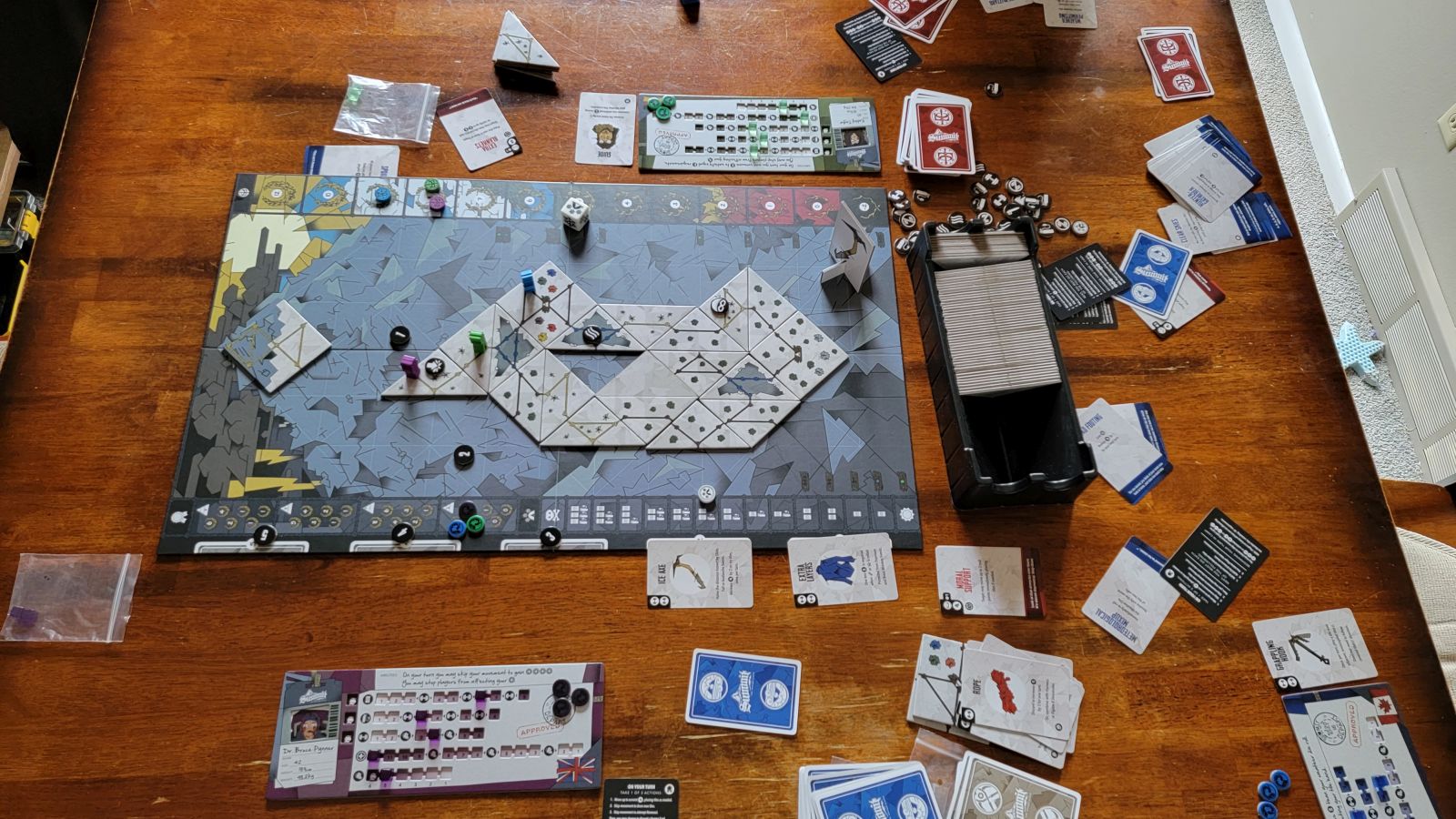 Summit gives players a false sense of “oh man, this game is fun” and “this could be easy”, but there are many difficulties to play on and playing on harder difficulties is not for the faint of heart. In my experience the harder difficulties took the game from “oh hey we can increase the challenge to have a bit more fun”, to “if we increase the difficulty, winning will be super hard and almost impossible”. While this might not seem like the biggest deal, it can affect the overall fun factor that players get while playing Summit. Then there were the separate rule books and trying to keep track of those based on which mode of the game you are going to play. Also, some of the event cards are unreasonably brutal.