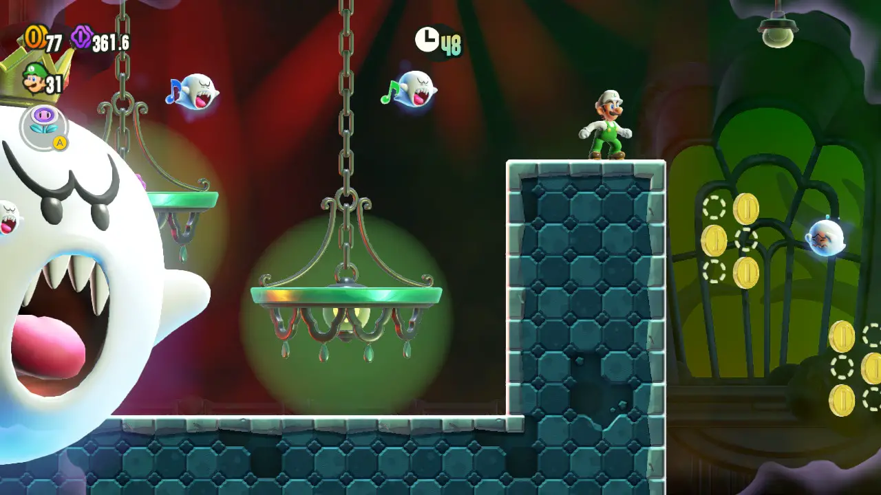 Wonder litters its world with a ton of extra smaller challenges along those lines. Proper levels don’t last long already, yet I still appreciate having something even less committal to break things up. You don’t always want to play Mario worrying too much about finding secrets or all of the collectibles, and these smaller levels give a nice reprieve from those concerns.