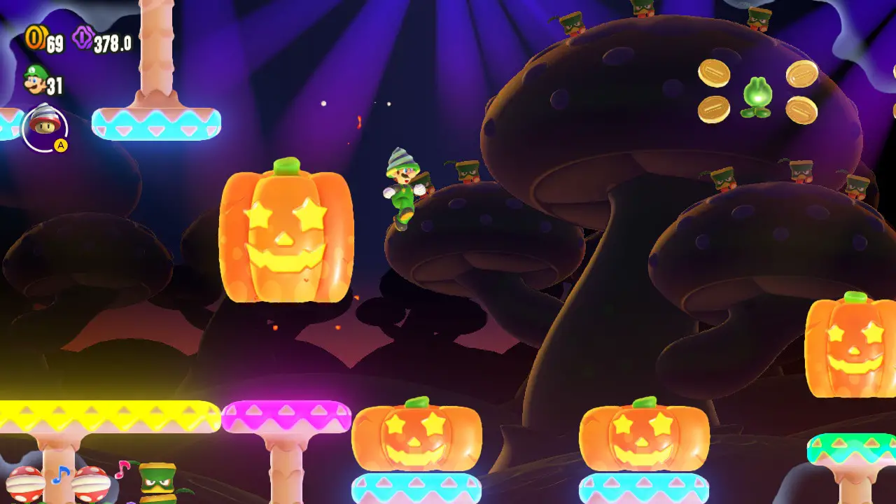 In that way the Wonder Flowers come across as more of a framing device than a genuine innovation. The “Wonder” sections likely would have been the entire core of the level in other Mario games. Some of these Wonder ideas actually have been before.