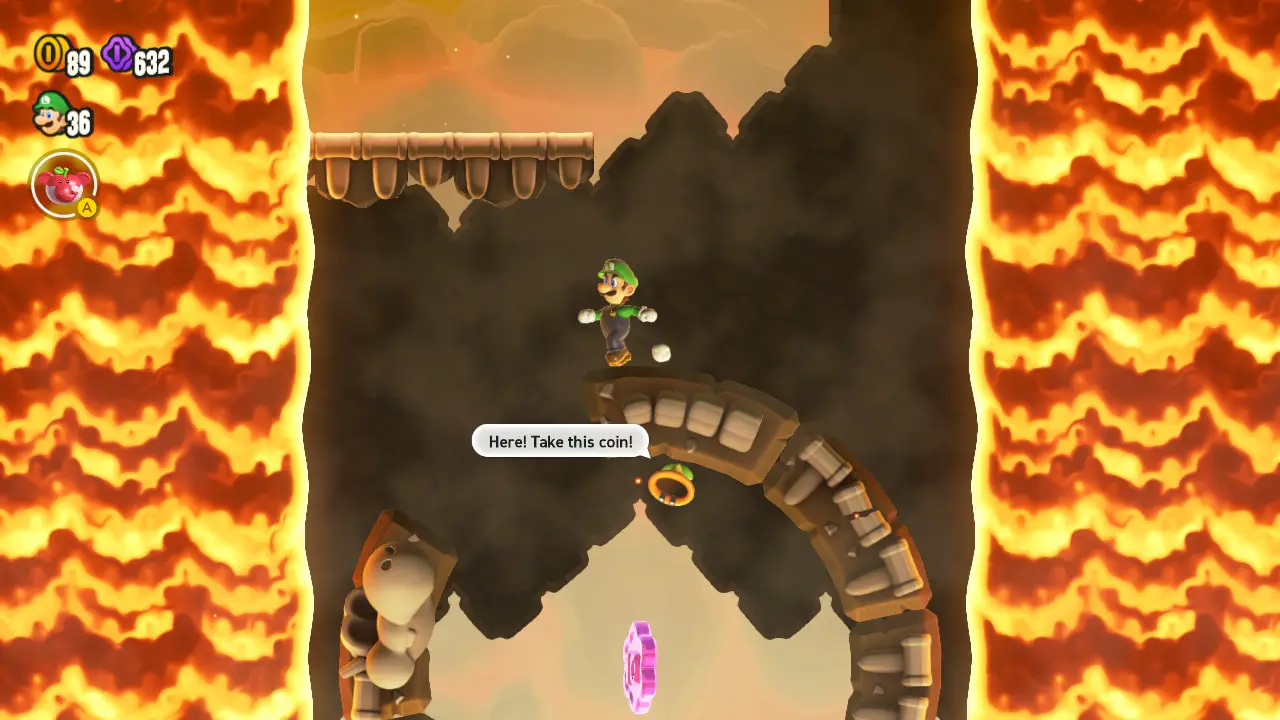 By separating these ideas out and turning them into mystery boxes you actively opt into, they essentially give each level an extra chance to leave a strong impression. That opportunity just comes at the cost of fully exploring the extra concepts they introduce. A few Wonder twists do return for encores, but given that their entire purpose is to surprise you, that can be disappointing in its own way. Mario risks getting burned no matter what he does with these Wonder Flowers!