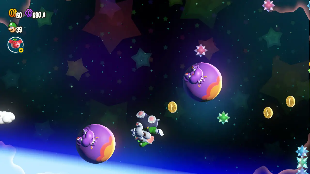 Dramatic surprises appear again and again in a constant assault of ideas. Objects in the level become sentient, your perspective changes, Mario transforms into a goomba, hippos take you to space, and much, much more. The Wonder Flowers keep you on your toes and give you something to consistently look forward to. A sense of anticipation builds as you go through a level, experiencing its initial “gimmick” only to wonder how the “Wonder” version of the level will look. Most Wonder Flowers met my expectations, but the best far exceeded them by taking things in a direction I never expected.