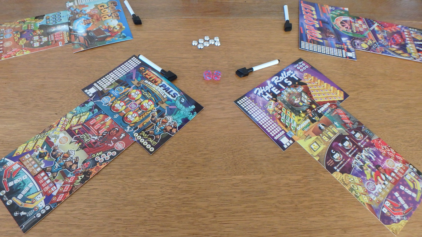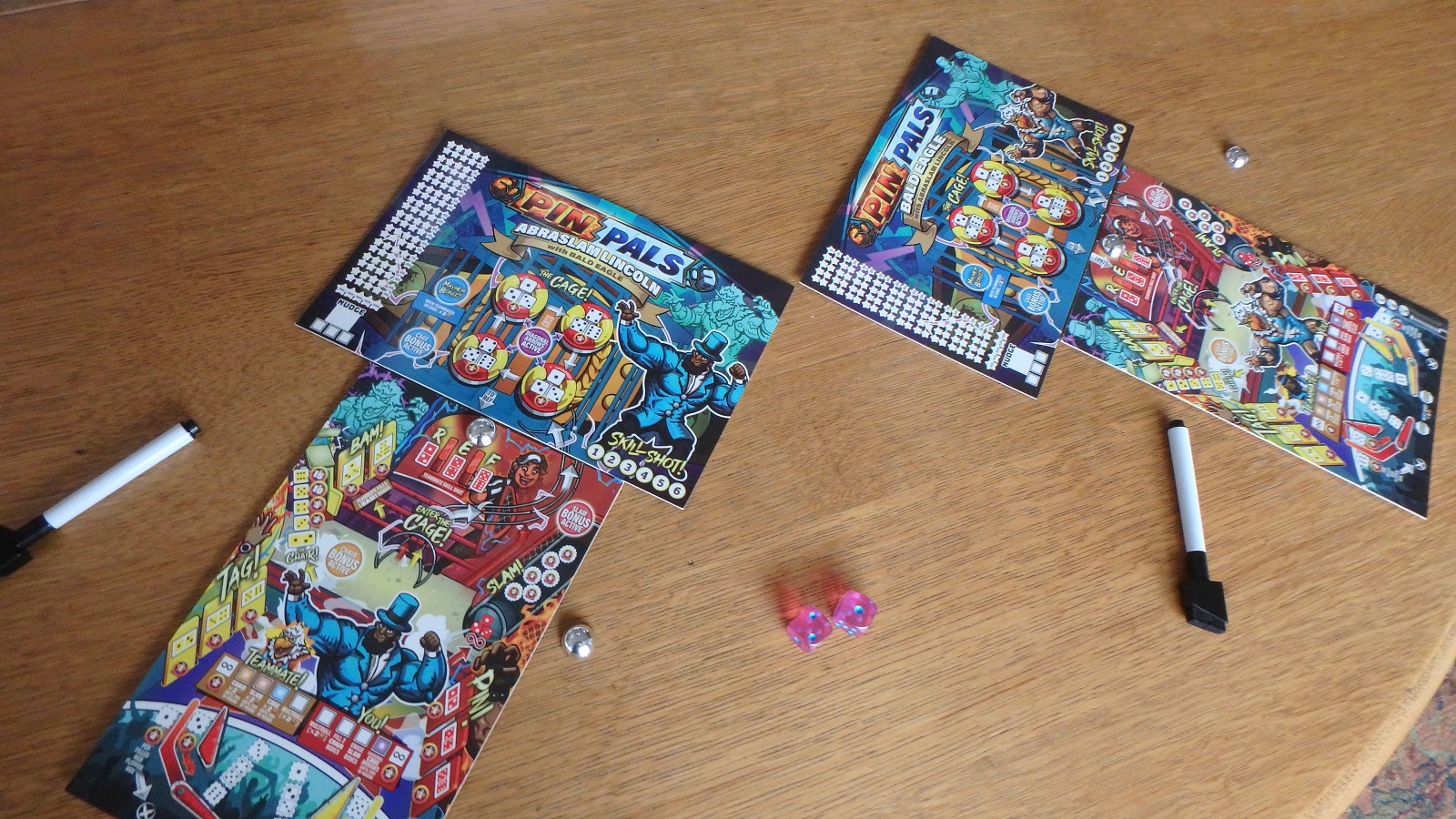 Skipping over Pin Pals for now, the only game in Ramp it Up I really bounced off of was Top Speed. The features themselves are arguably even more simple than those in Gopher Gold, but Top Speed adds a speed mechanic, which will add a set number to all die results. You manage speed by hitting either the gas or brake features. The general rule of thumb here is that flippers require lower results, but scoring features need higher results, often even seven or higher (astute readers will realise seven is higher than a normal d6 will roll). In the end, Top Speed plays a lot like Gopher Gold but with more moving parts to juggle. This isn’t exactly my cup of tea, but could easily be someone else’s.