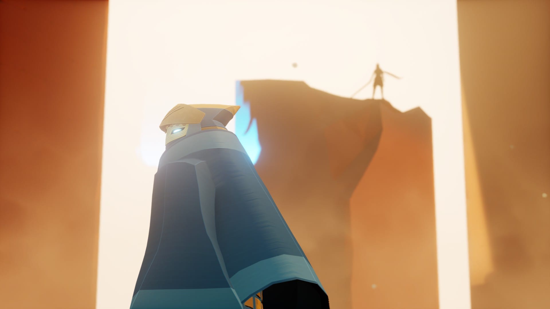 Along your *cough* journey *cough*, you’ll find tablets with ancient writings that give you a better understanding of the world, as well as history and lore to explain more fully the nature of the conflict the Wraith has been brought back to solve. You’ll encounter some other characters on your travels, and the mystery of their roles is resolved in time. For a game with no spoken narrative or dialogue, Sword of the Sea tells a fascinating story with some poignant twists that manage to deliver real emotional impact.