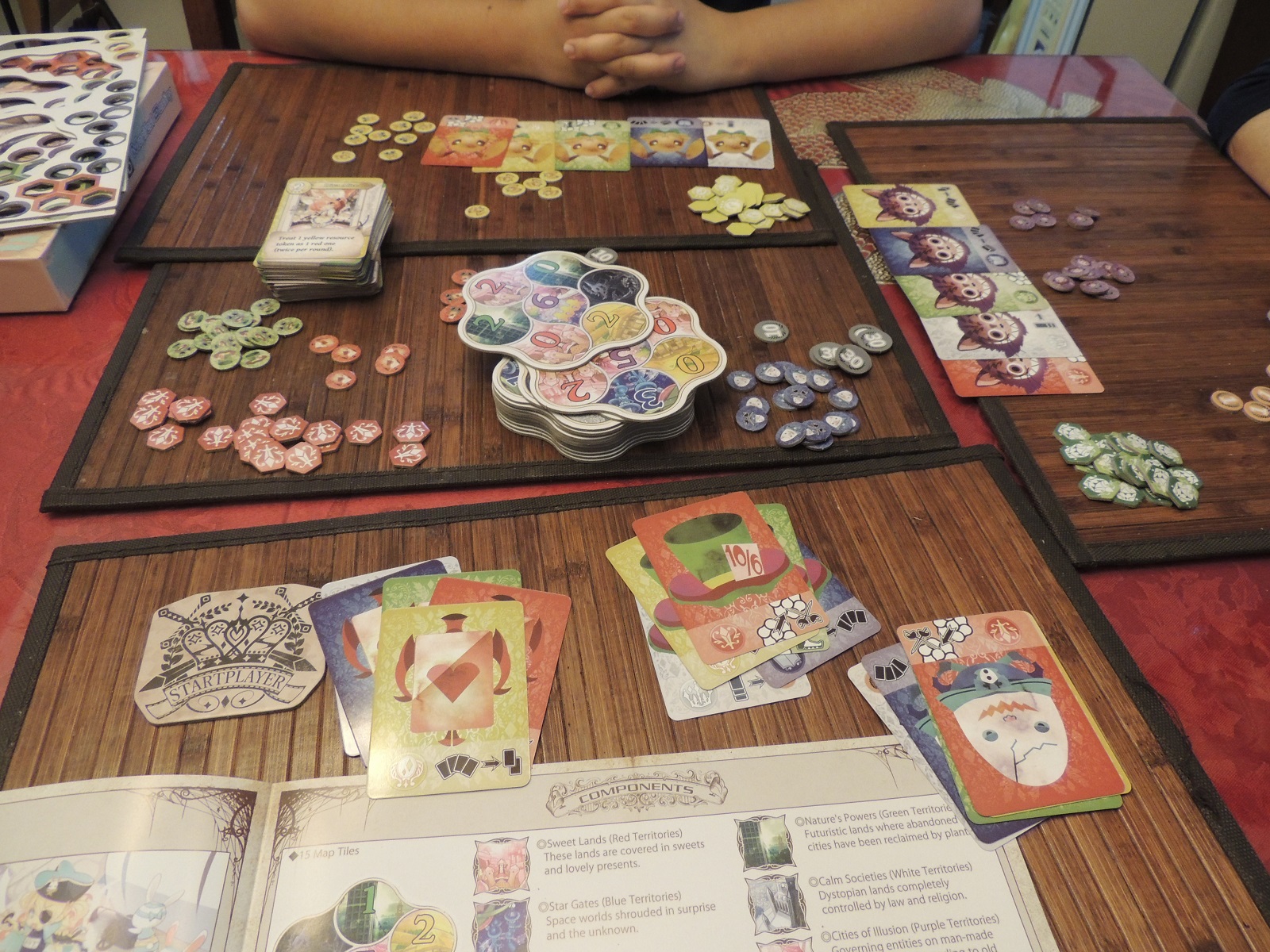 Aside from this, I feel like getting mid-game victory points feels a bit skewed towards getting them with Mystic Forest spaces rather than with white Alice cards. In the three-player games I’ve played, the person who did end up getting even one Mystic Forest ended up being the winner, even though all of us did invest in cards for the white spot (which give you automatic victory points). We ended up ditching that strategy and went headfirst into Mystic Forests, which means they’re a little imbalanced. This isn’t a problem with four or five player games considering that it’s harder to claim a majority of surrounding spaces, but I think they should be nerfed in three-player ones.